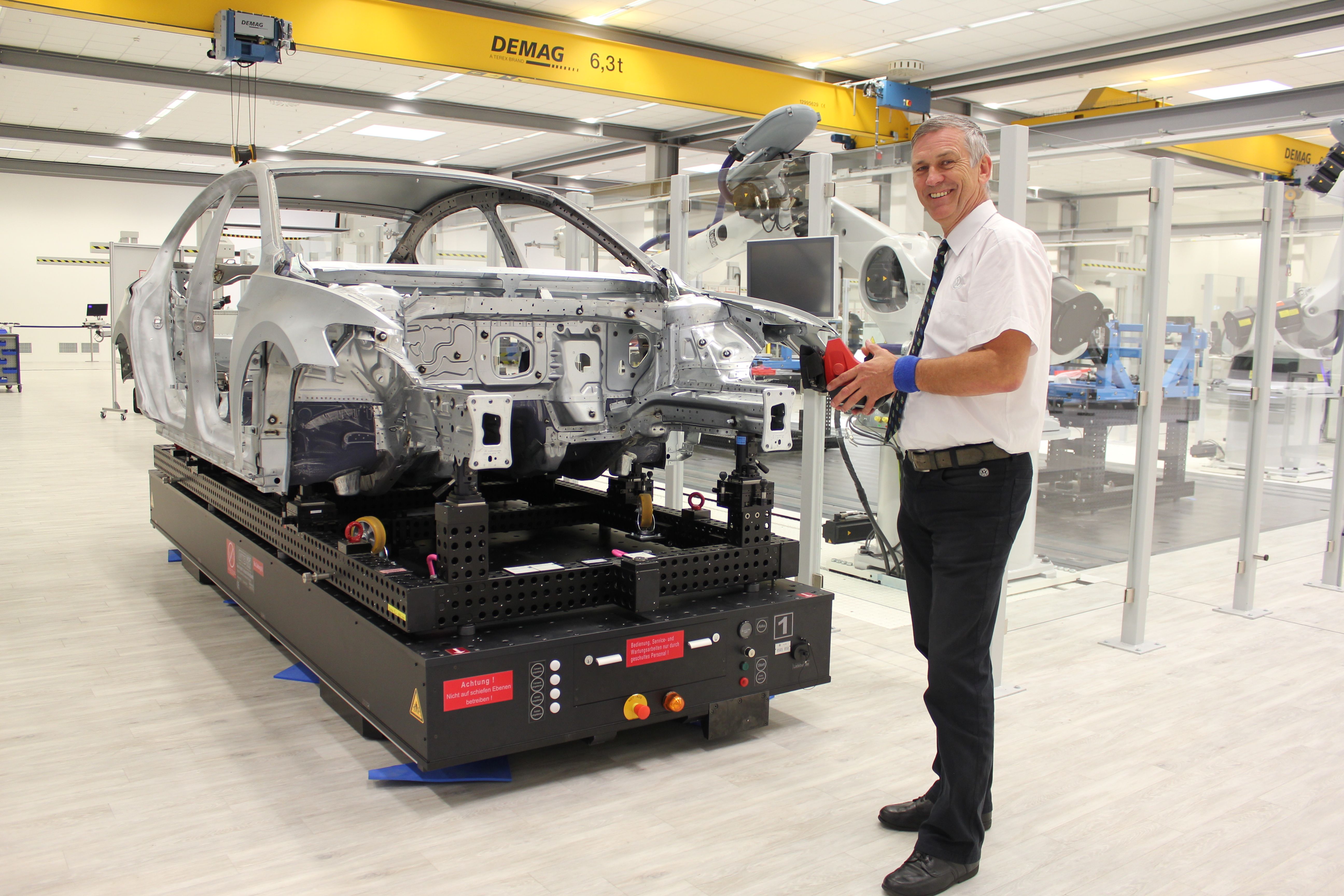 Hinrich Focken, zuständig für die Qualitätssicherung Cuben und Meisterböcke: "Unsere Idee war, große Werkstücke, die erheblichen Rüstaufwand verursachen, außerhalb des Messvolumens vorzurüsten. Zusammen mit der Firma Horst Witte Gerätebau haben wir eine optimale Lösung gefunden: eine elektrisch verfahrbare Alu-Sandwichplatte mit Fernbedienung."