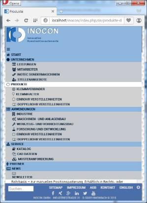 Webseiten-Relaunch der Firma INOCON - Der Spezialist für Klemmverbinder und Verstelleinheiten