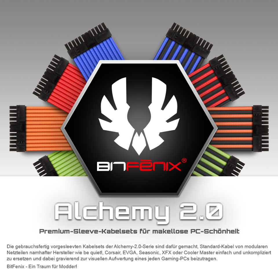 Brandneu und exklusiv bei Caseking: Die vorgesleevten Alchemy 2.0 Kabelsets in Premium-Qualität von BitFenix für viele Netzteil-Hersteller