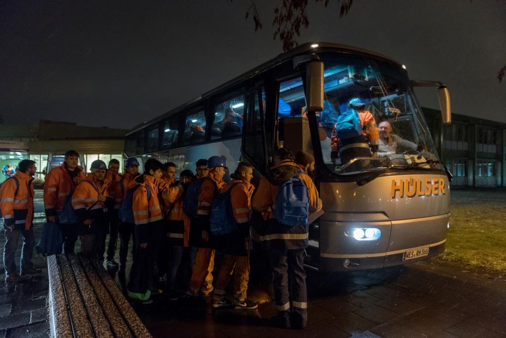 Auf dem Weg nach Brüssel um für den Erhalt ihrer Arbeitsplätze zu demonstrieren: Auszubildende und Mitarbeiter von thyssenkrupp Steel