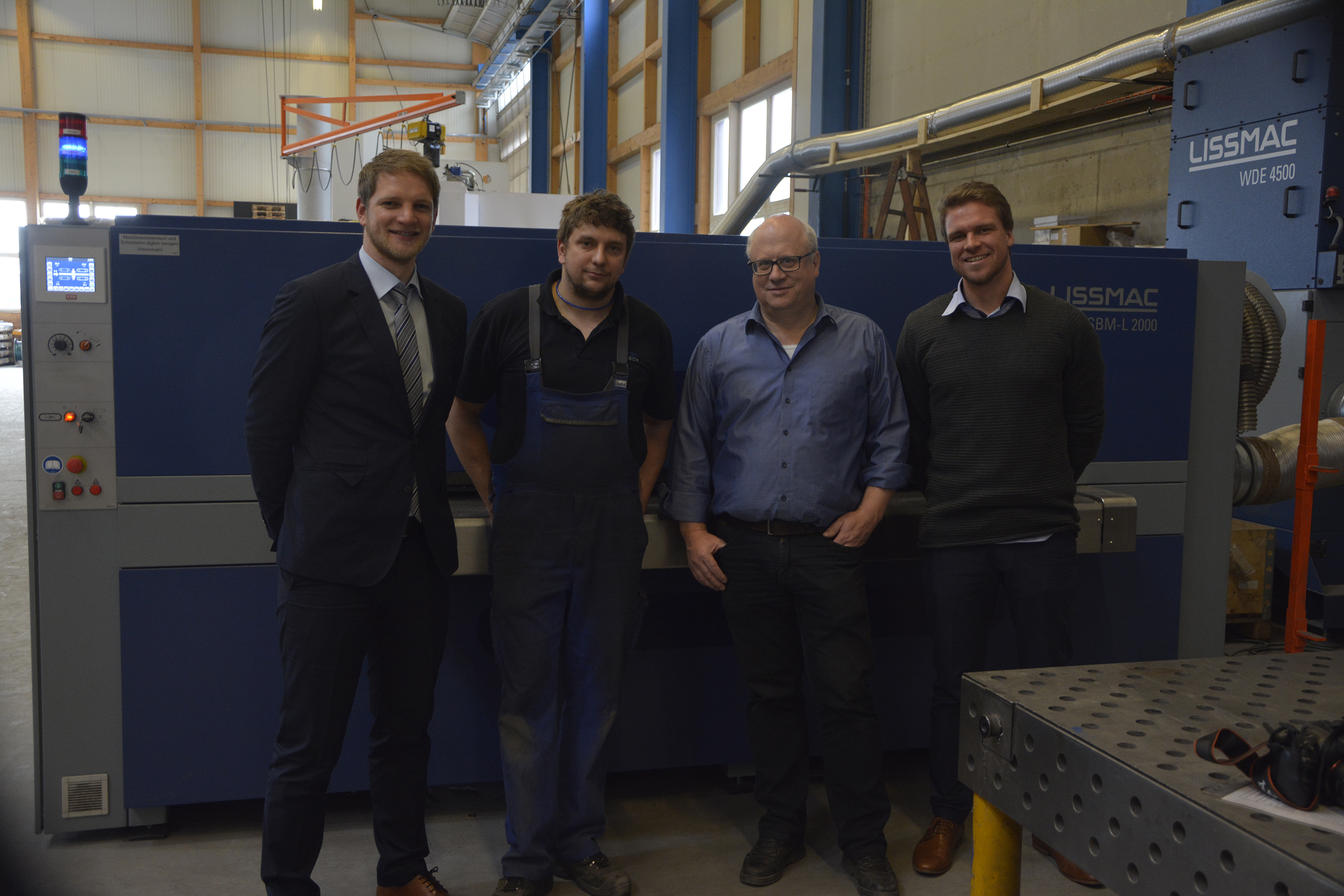 Picture 2: Sebastian Haefele, LISSMAC Marketing Manager; Profiblech Machine Operator; Walter Erni, Profiblech Production Manager; Timo Staedele, LISSMAC Marketing Associate