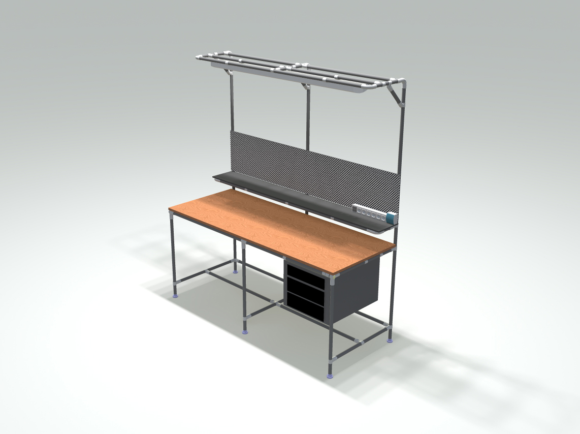 Auf der LogiMAT präsentiert NeoLog flexible Rohrklemmsysteme der beiden etablierten Rohrdurchmesser 28 und 28,6 mm – zum Beispiel für einen Arbeitsplatz (Bild: NeoLog )