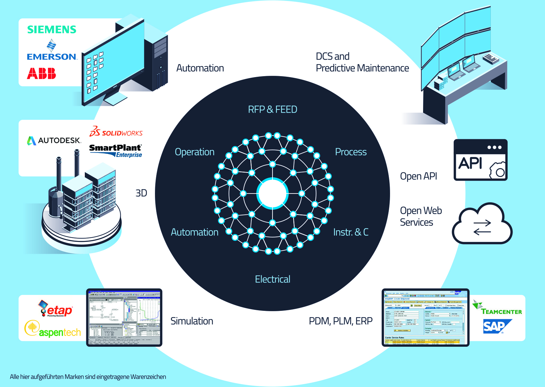 The versatile model in EB is the centre for all core disciplines in plant engineering and its direct communication with complementary systems (© AUCOTEC AG)