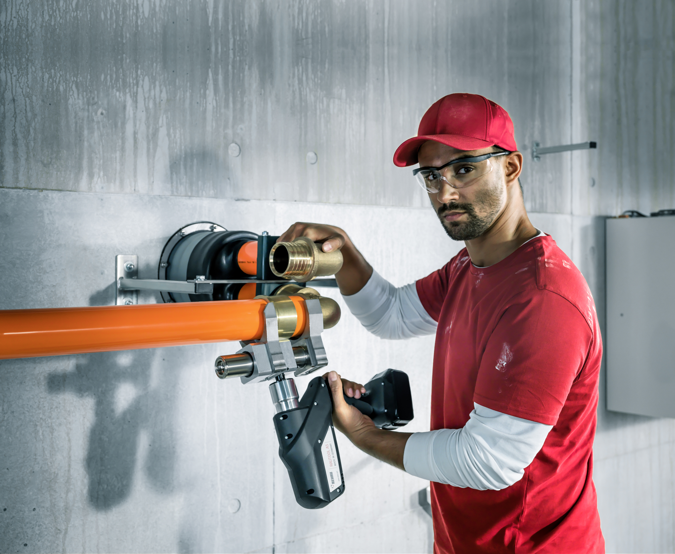 In nur drei Schritten ist die Verbindung hergestellt: Rohrende aufweiten, Fitting einstecken, Schiebehülse aufschieben. (Bild: REHAU)
