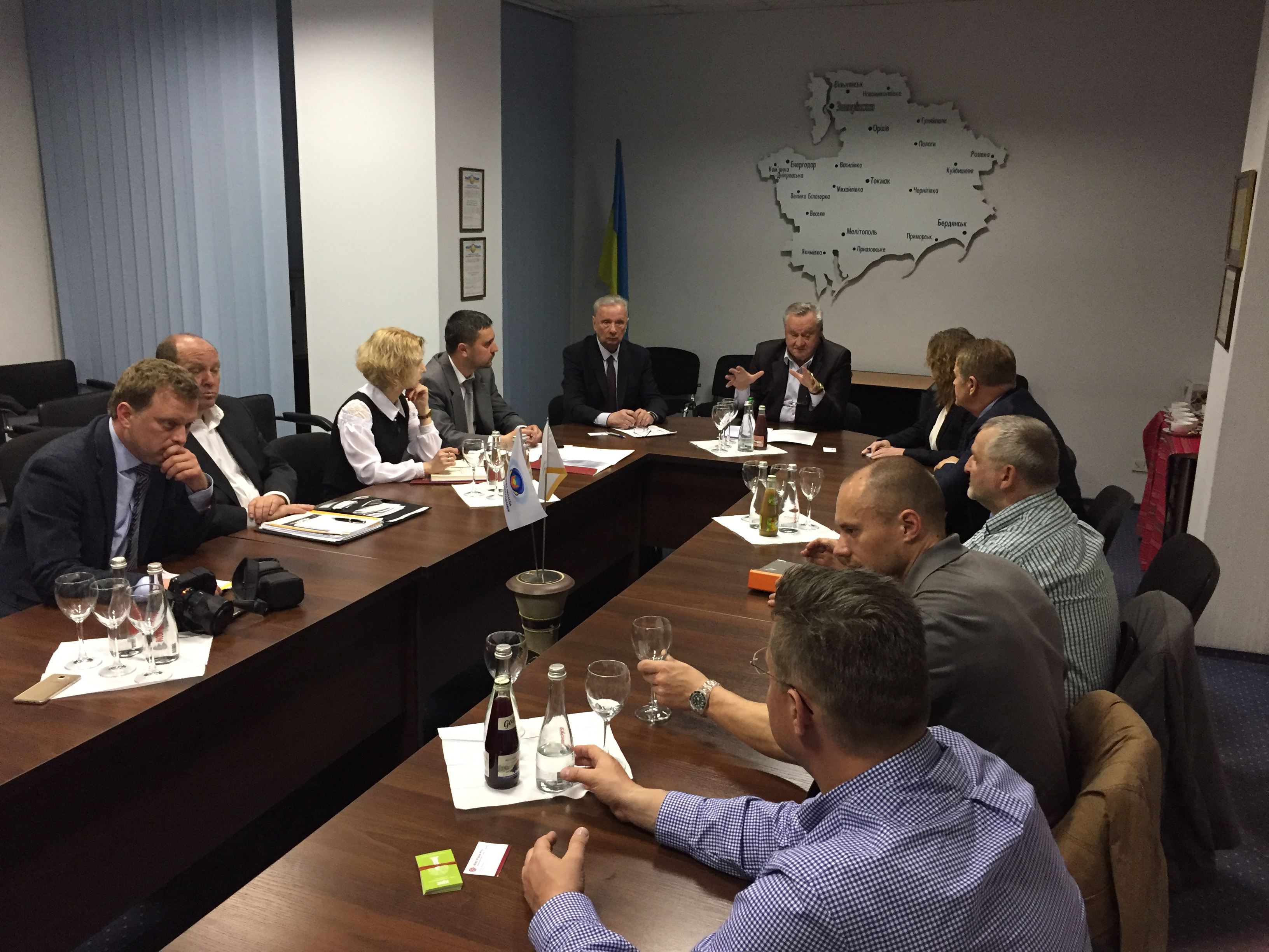 Der Vorsitzende des Unternehmerverbandes „Potential“, Alexandr Golowk (Mitte), erläutert den Delegationsteilnehmern die schwierige Lage, aber auch den Optimismus der Unternehmen der Region / Foto: IHK Magdeburg