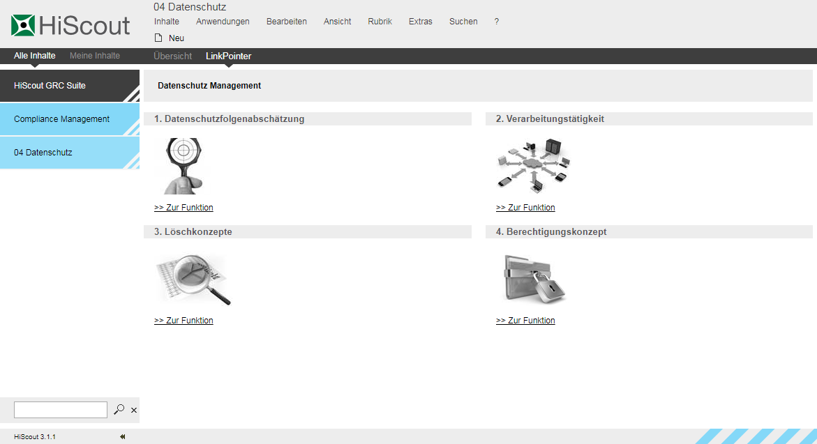 Einstiegsmaske von HiScout Datenschutz