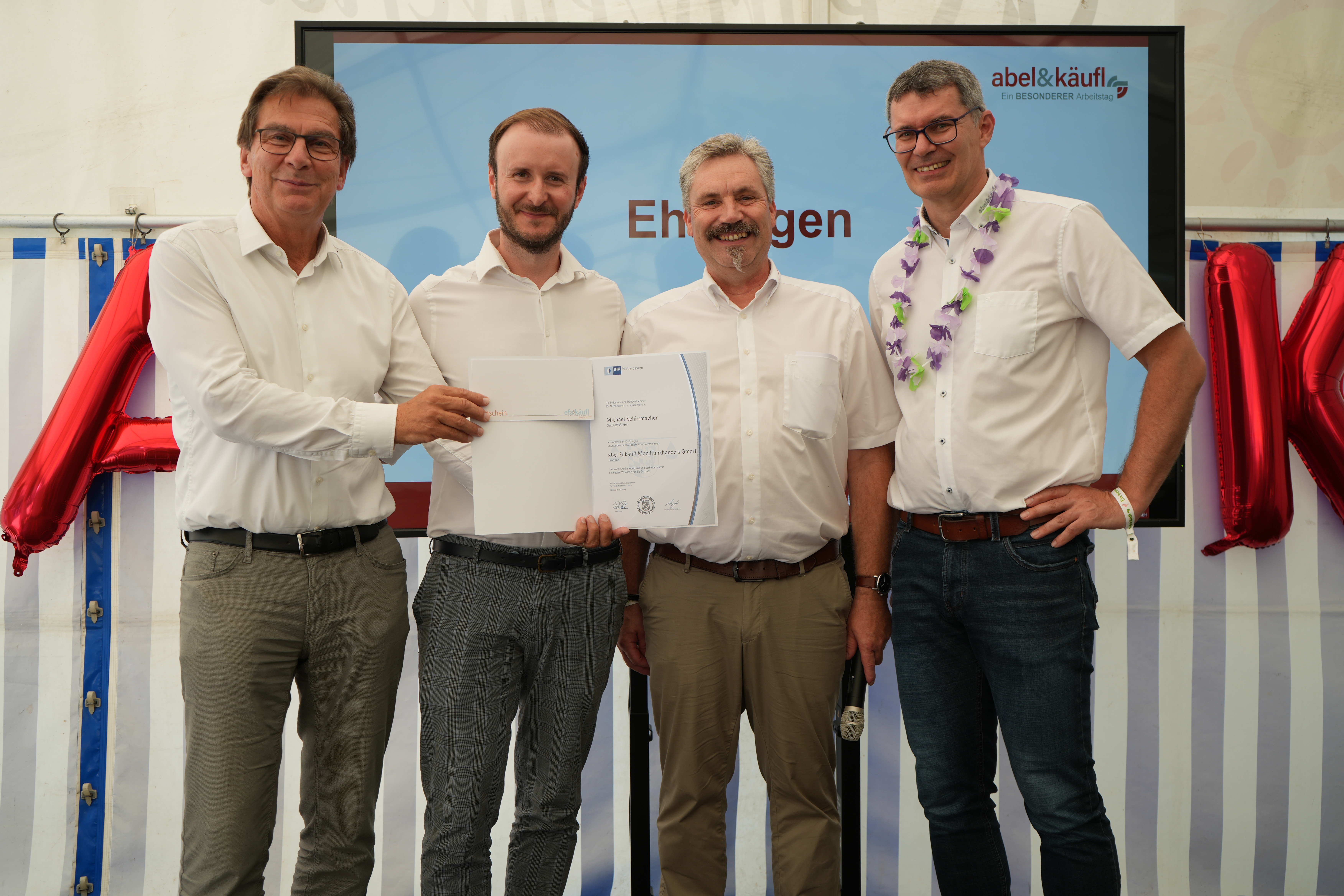 v. li.: Hans Graf, Jubilar Michael Schirrmacher, Franz Ketzer und Markus Ernle (alle Geschäftsführung abel&käufl)