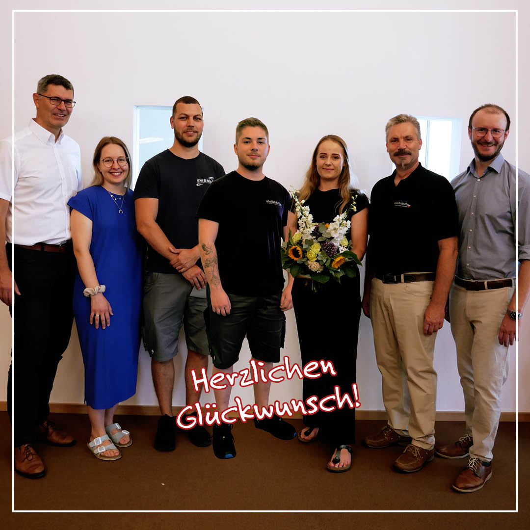 von links: Markus Ernle (Geschäftsführung), Sonja Pleyer (techn. Assistenz), Auszubildende: Simon Freier, Thomas Sedlmeier, Lara Schroeder, Franz Ketzer (Geschäftsführung), Michael Schirrmacher (Geschäftsführung)