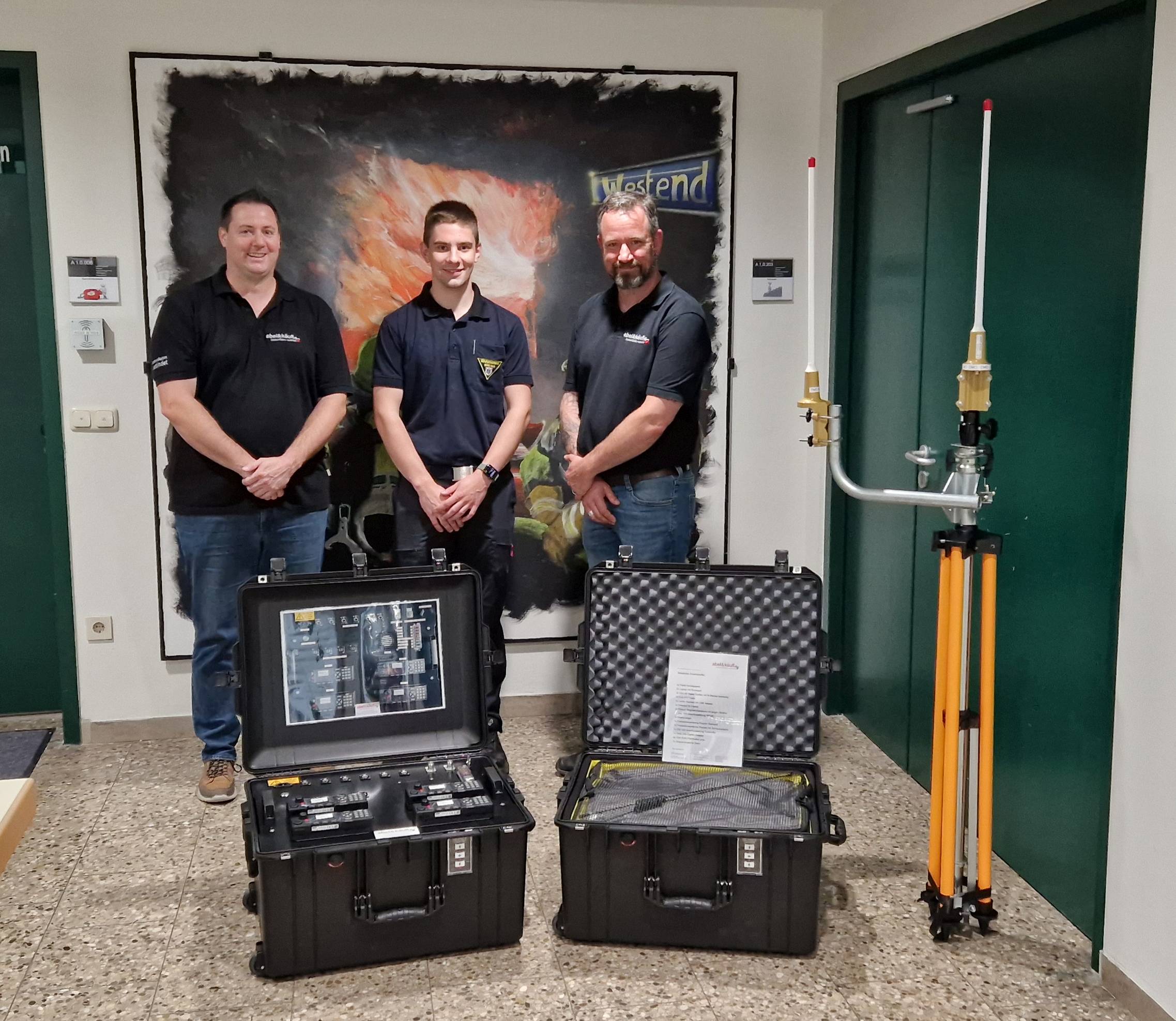 Übergabe der Funkkoffer an die Berufsfeuerwehr München Im Bild von links: Florian Meier, abel&käufl; Benedikt Liebl, Berufsfeuerwehr München; Andreas Merkel, abel&käufl