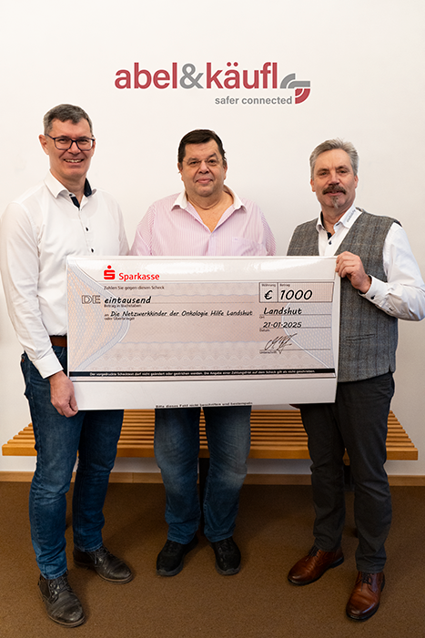 Spendenübergabe an Stille Hilfe e.V., von re.: Georg Siegl, Vertreter des Vereins und Franz Ketzer, Geschäftsführer abel&käufl
