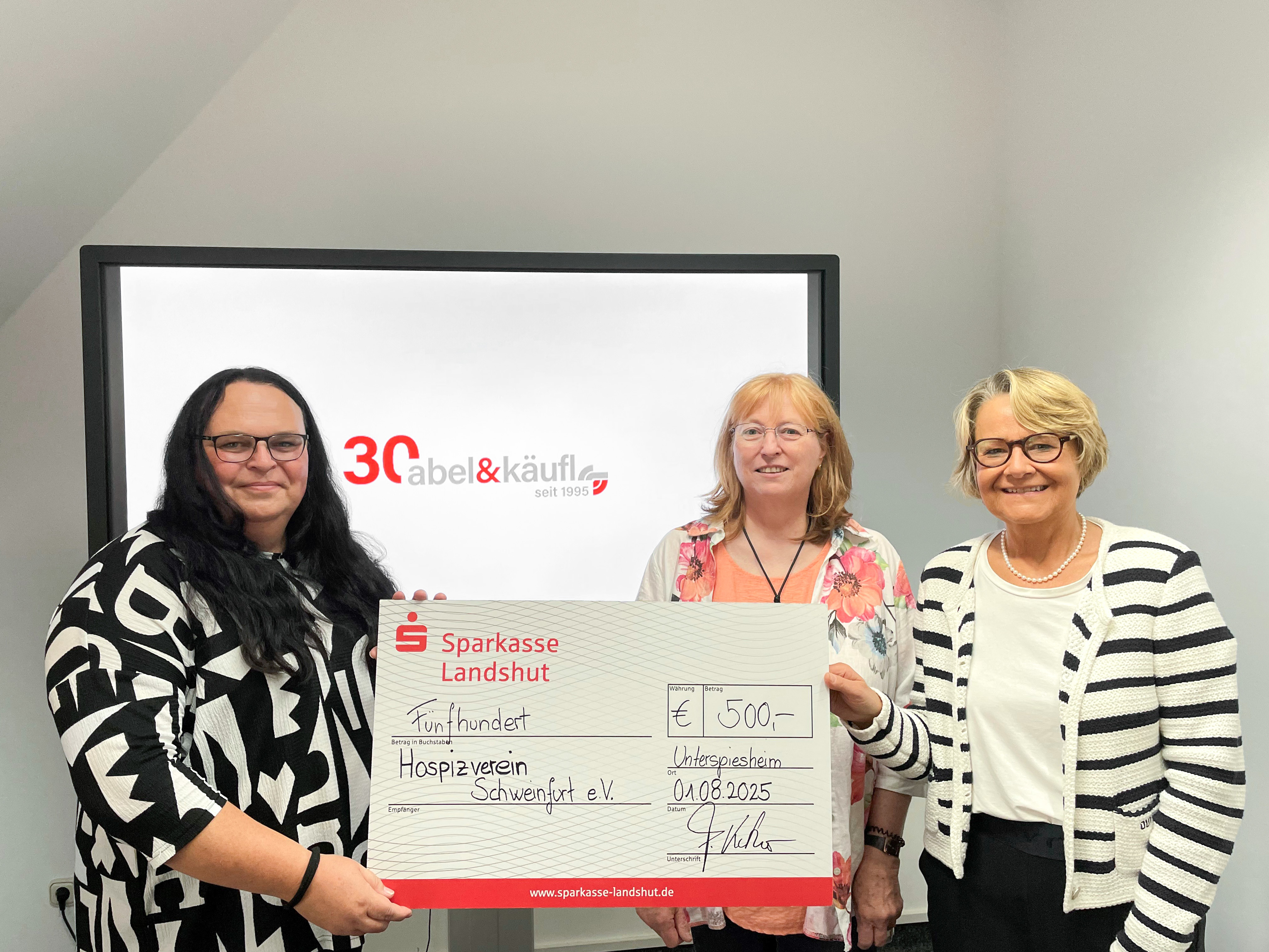 Spendenübergabe v.li. Julia Volpert, abel&käufl, Hospizverein Schweinfurt Koordinatorin Jutta Dummert und 2. Vorsitzende Susanne Ritzmann