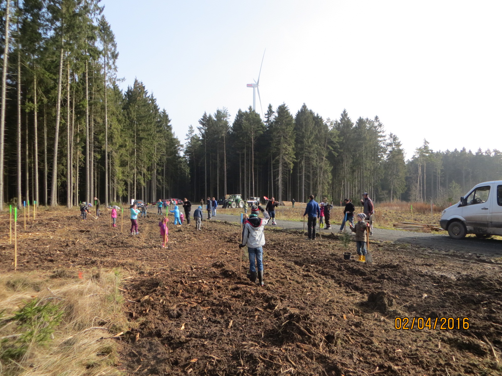 Harald Mohr, Förster im Forstamt Simmern, organisierte die Aktion: Das Forstamt kümmerte sich um die Bäume, errichtete den Wildschutz und bereitete die Pflanzflächen und die Beschilderung der Baumarten vor. ABO Wind, Projektentwickler des Windparks, unterstützte den Waldtag finanziell. „Unsere Windparks für den Wald so schonend wie möglich zu planen, ist uns ein wichtiges Anliegen“, erklärt ABO Wind-Veranstaltungsplaner Patrick Djuga. „Mit der Unterstützung des Waldtages möchten wir uns auch für die gute Zusammenarbeit mit der Gemeinde und dem Forstamt bedanken.“ ABO Wind hat im Rhein-Hunsrück-Kreis bereits 37 Windkraftanlagen mit insgesamt über 100 Megawatt errichtet.