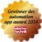 Die offizielle Preisverleihung der "automation app awards 2014" wurde im Rahmen der diesjährigen Messe SPS IPC Drives in Nürnberg am 26. November 2014 abgehalten. In Halle 3, am Messestand von Vogel Business Media nahmen für die ACE Stoßdämpfer GmbH André Weßling, Head of Global Marketing, und Dieter Wohlschlegel, Produktmanager Vibrationsisolierung, sowie Isil Kansu von der Agentur Comessen die Auszeichnung entgegen.