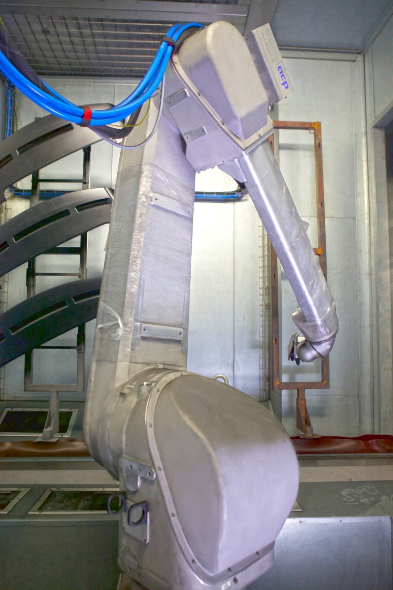 Der Reinigungsprozess ist dem Lackierprozess mit Robotern sehr ähnlich, so dass nahezu identische Programmierlösungen verwendet werden können