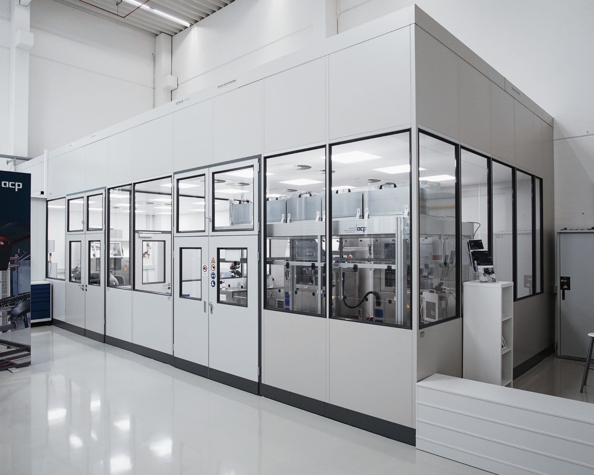 Für die Durchführung von High Purity-Reinigungsversuchen unter hochreinen Bedingungen hat acp die Testkapazitäten um ein Reinraum-Technikum erweitert. Basis ist ein validierter Reinraum der Klasse ISO 7 mit Zonen bis Klasse 5 nach ISO 14644-1.