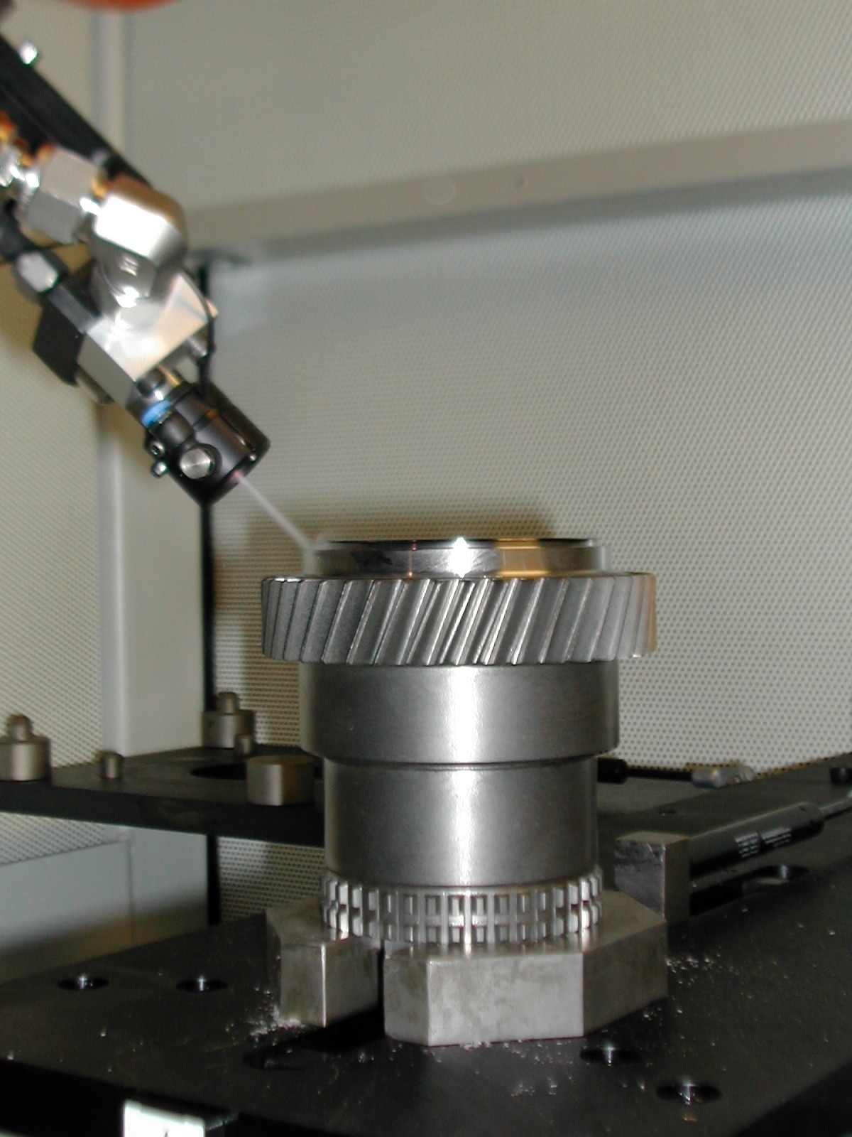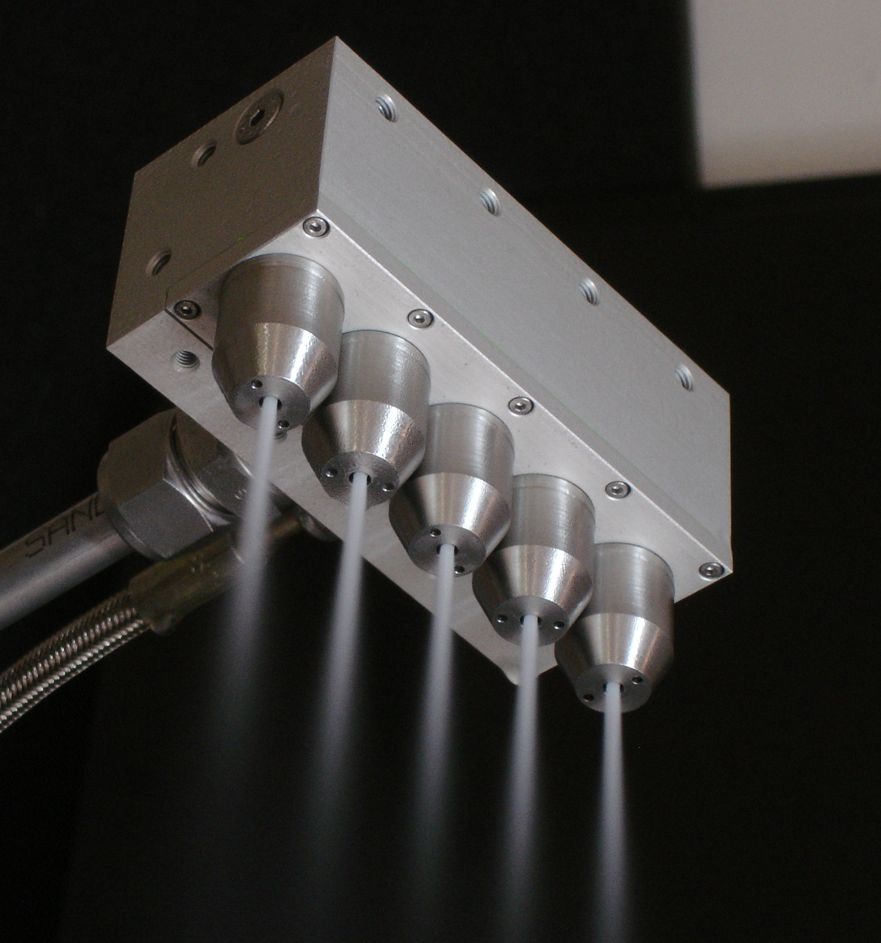 Die innovative, verschleißfreie Zweistoff-Ringdüse erzeugt einen gepulsten Strahl. Sie wird dafür mit einem eigens für diese Applikation entwickelten Ventil ausgestattet, das Taktzeiten von bis zu 20 Millisekunden ermöglicht.