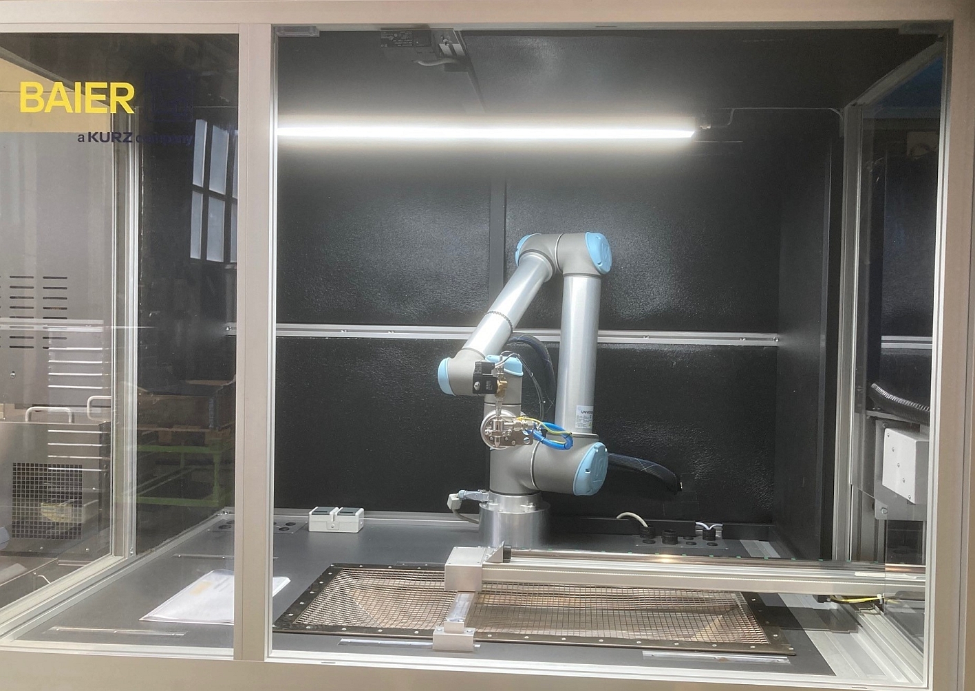 Das komplett aus Edelstahl gefertigte Reinigungssystems mit glatten Oberflächen ist mit einem Roboter ausgestattet. Es lässt sich einfach in verkettete Fertigungslinien integrieren und digital steuern.