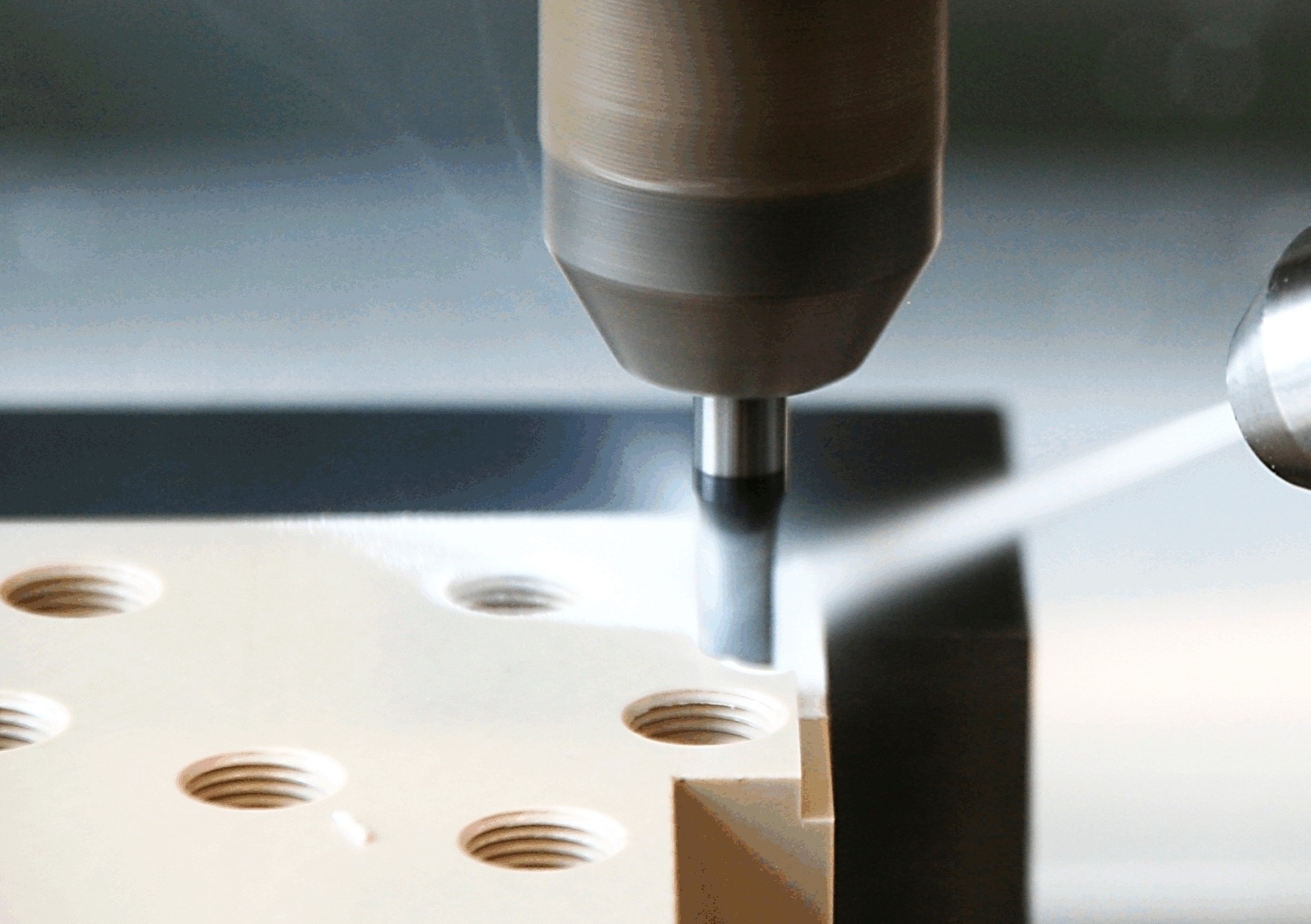 Ein weiterer Anwendungsbereich ist die Entfernung partiell vorhandener Folienrückstände nach dem Heißprägen beziehungsweise dem Aufkaschieren von Aluminium auf Kunststoffteile. Der getaktete CO2-Druckluftstrahl verfügt außerdem über ausreichend Reinigungsleistung, um feine Flittergrate an Aluminium- und Zinkdruckgussteilen zu entfernen. Ebenso lässt er sich für das gleichzeitige Entgraten und Reinigen von harten und spröden Kunststoffen, beispielsweise PEEK und PPS einsetzen. Beim Zerspanen dieser Kunststoffe und von Aluminiumbauteilen bietet die neue Zweistoff-Ringdüse ebenfalls Optimierungspotenzial. Als Alternative zu konventionellen Kühlschmiermitteln ermöglichen die kalten Schneekristalle aus Kohlendioxid ein erhöhtes Zeitspanvolumen und damit eine verbesserte Produktivität sowie einen reduzierten Werkzeugverschleiß. Hinzu kommt eine deutlich verringerte Verschmutzung der Bauteile und Maschine.