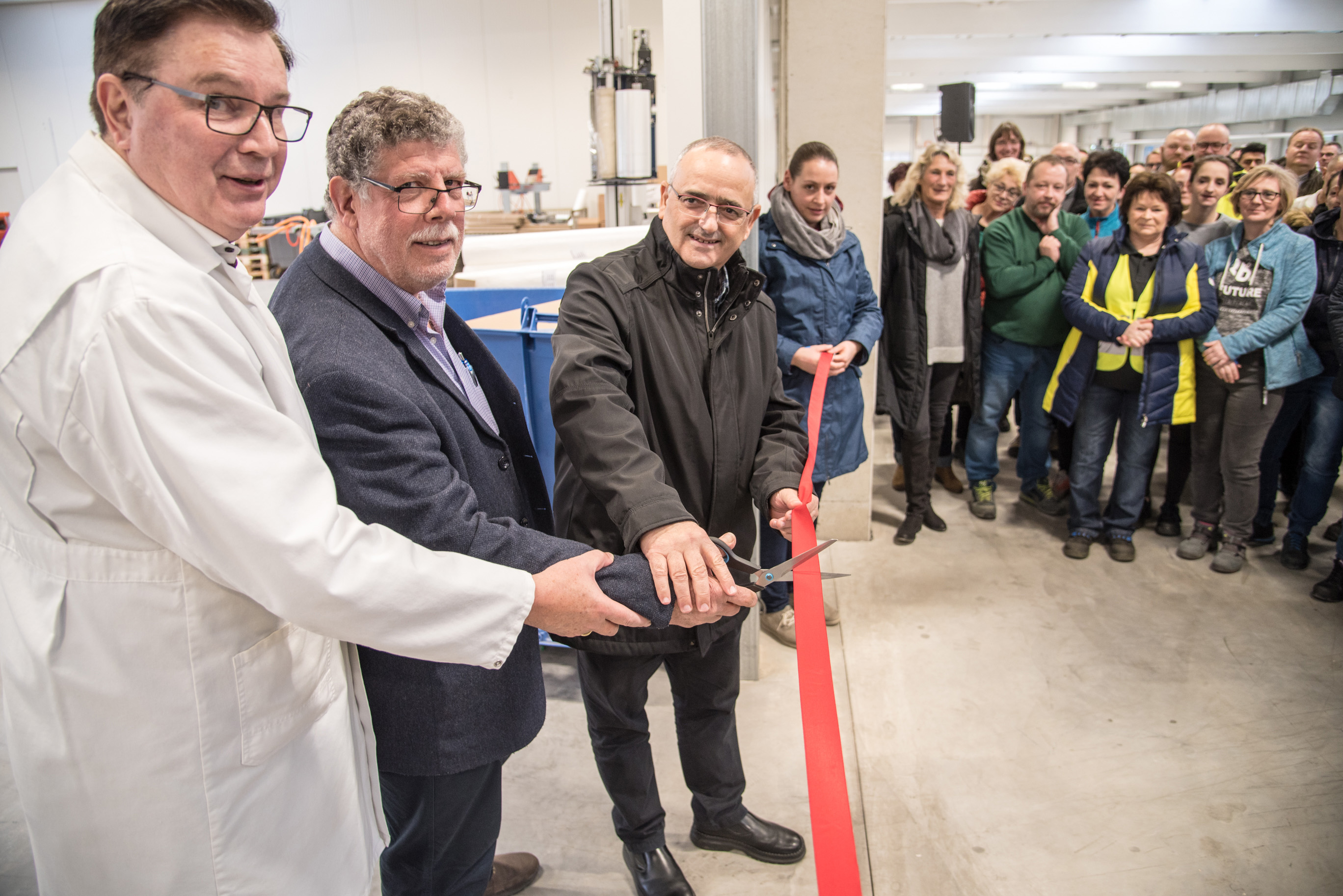 Geschäftsführer Wolfgang Tenbusch weihte zusammen mit Albaad-Präsident Amnon Brodie (Mitte) und Dan Mesika (rechts), CEO der Albaad Unternehmensgruppe, feierlich die neue Halle ein. Foto: Carsten Hinnah