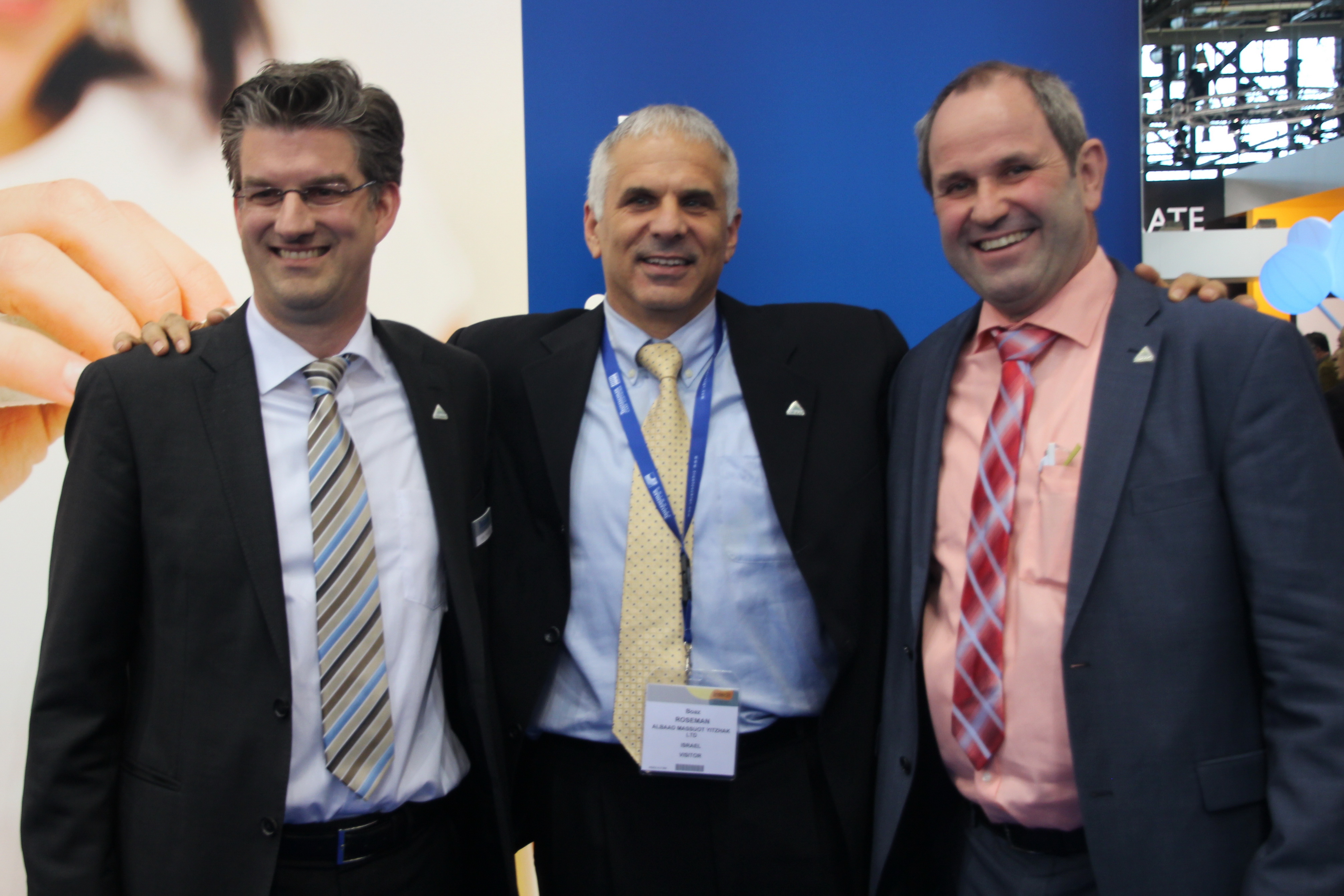 Boaz Roseman, CEO Albaad Corp. (Mitte), mit Marc Wolpers von Trützschler Nonwovens (links) und Dr. Klaus Afflerbach von Voith Paper GmbH & Co. KG (rechts)
