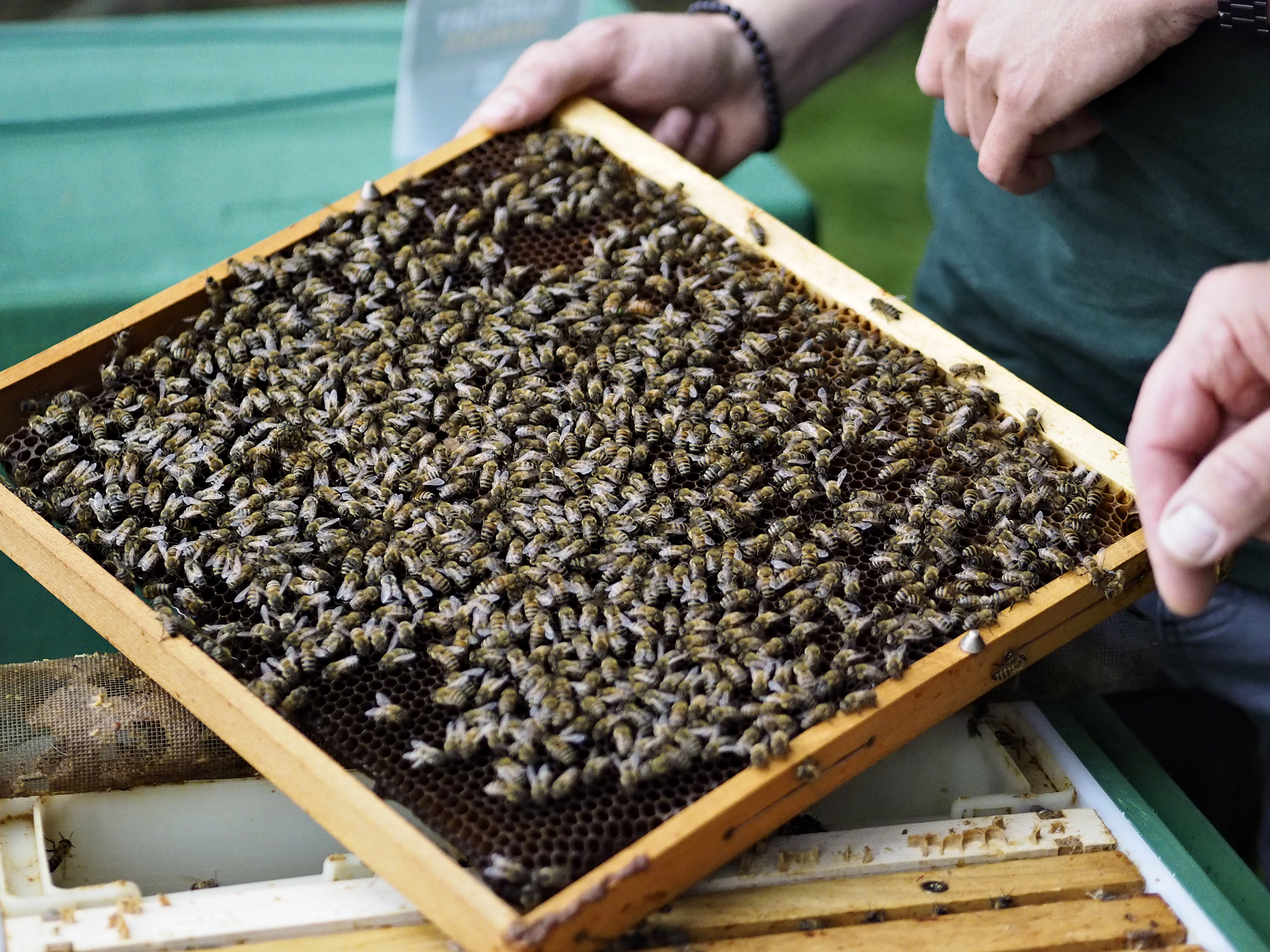 Als Teil der Waldpatenschaft stellt Albaad auch Bienenstöcke im Waldstück auf.