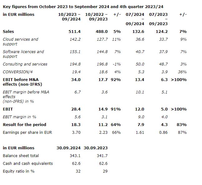 Key figures from October 2023 to September 2024 and 4th quarter 2023/24