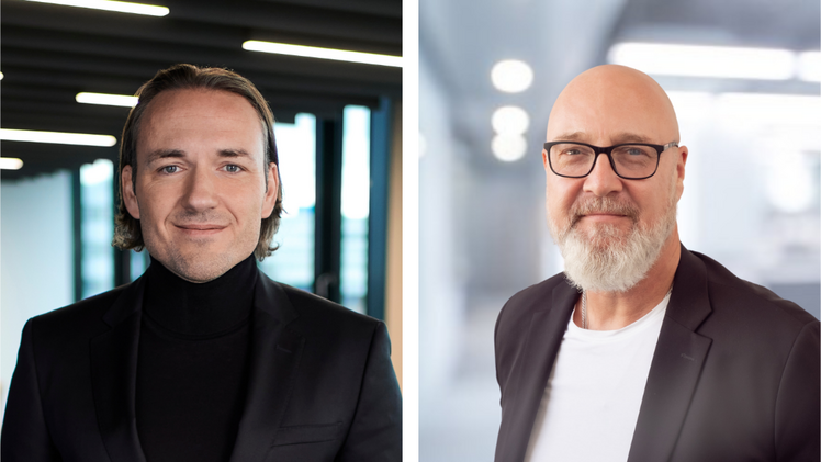 Thomas Herbst, founder and managing director of the apsolut group, and Michael Zitz, CEO of the All for One Group, at the All for One headquarters