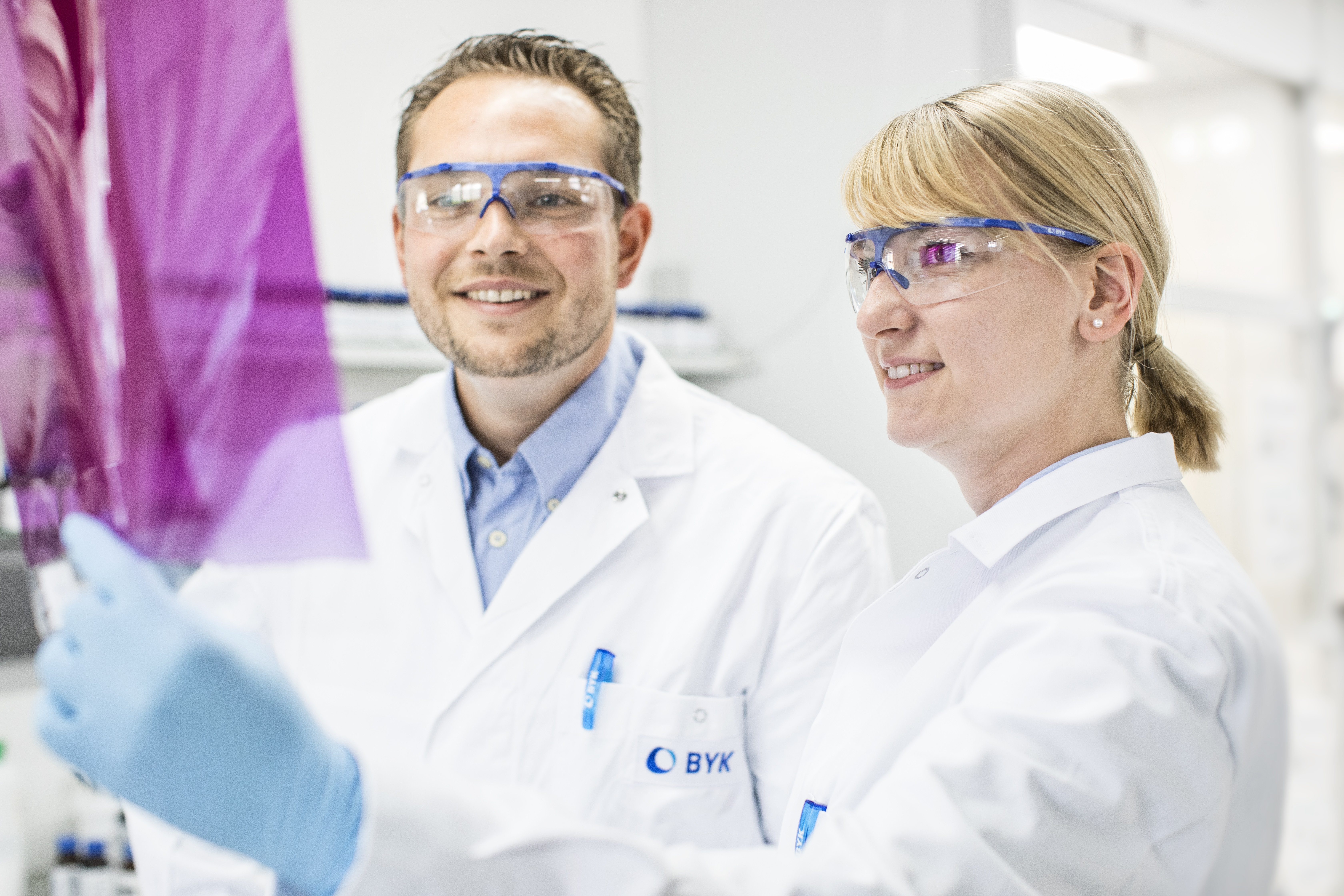 Nachhaltige Forschung und Fokus auf Innovation: Mitarbeiterin von ALTANA bei der Arbeit im Labor.