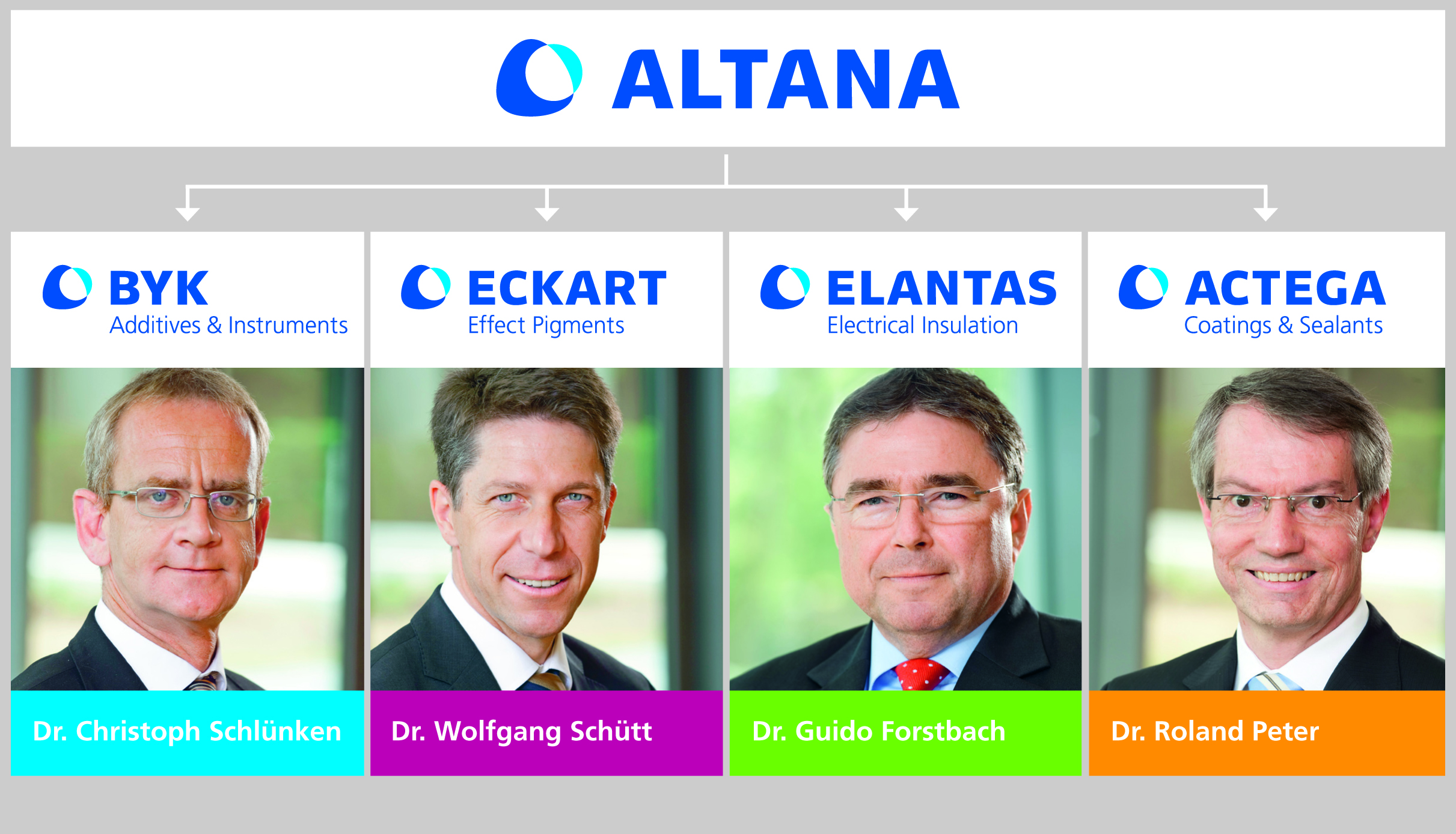 Die Grafik zeigt die neuen Zuständigkeiten der Geschäftsbereichsleitungen innerhalb der ALTANA Gruppe