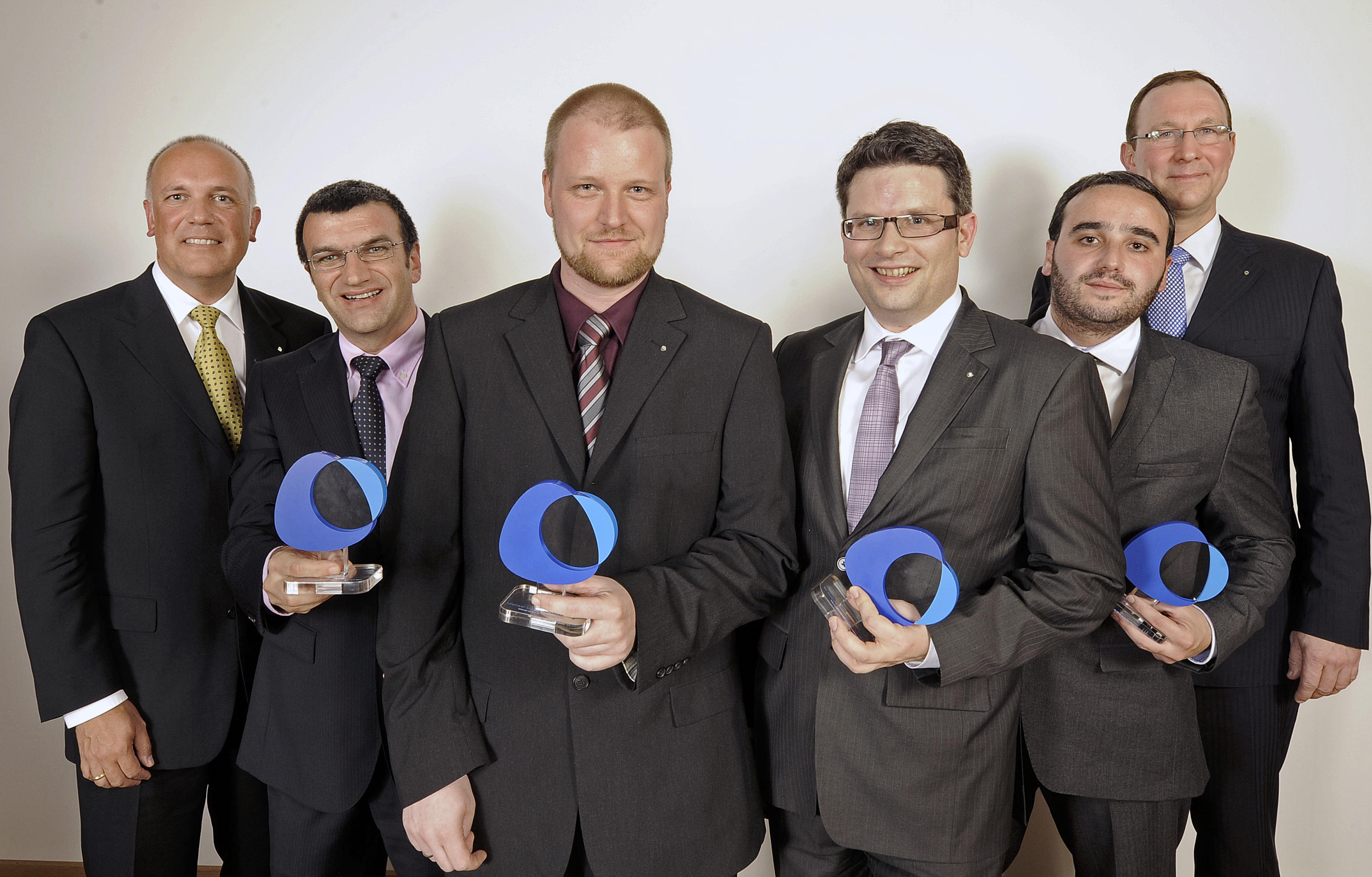 Winner and congratulators of the ALTANA Innovation Award 2012 (from left): Dr. Bernd Göbelt (BYK), Dr. Jürgen Omeis (CTO BYK), Dr. Georg F.L. Wießmeier (CTO ALTANA), Akihiro Wakahara (BYK Japan), Dr. Matthias L. Wolfgruber (CEO ALTANA) und Dr. Stefan Mößmer (BYK). Also on the BYK winning team (but not in the picture): Mark Heekeren, Marcus Meichsner, Markus Rößner, and Sabine Stelz