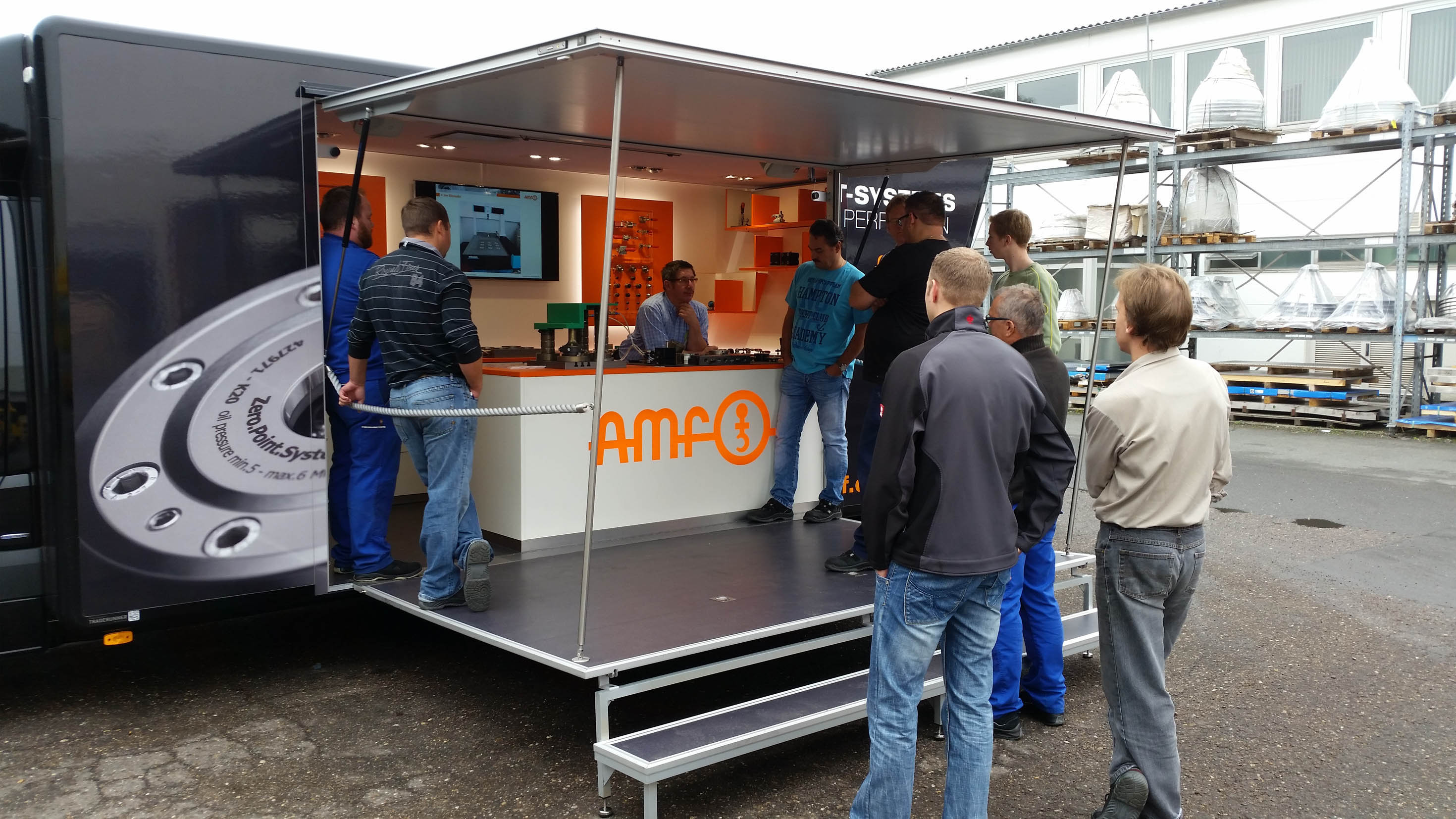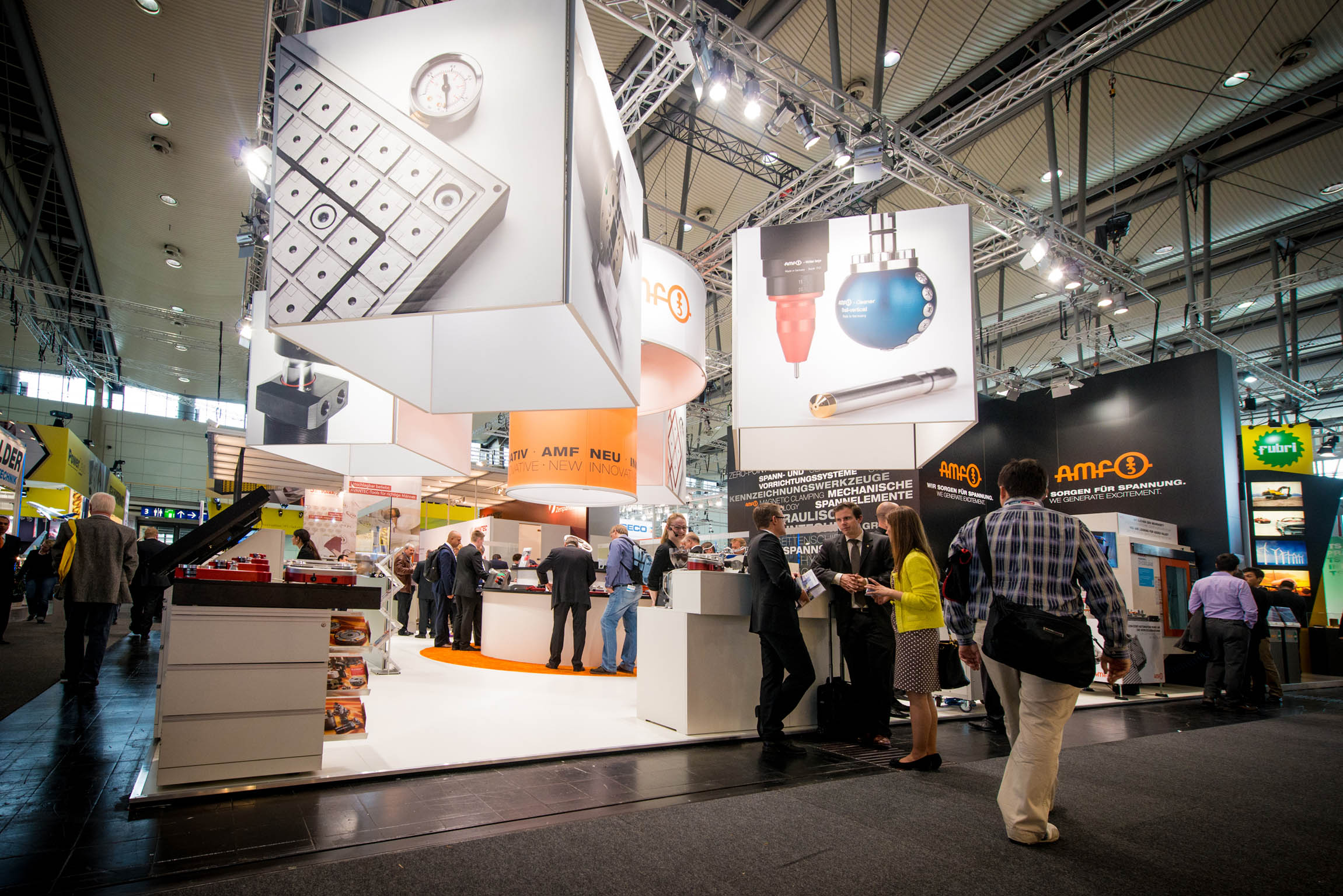 Mit einem völlig neuen Messekonzept präsentierte sich der Spanntechnikhersteller AMF (Andreas Maier Fellbach) 2011 auf der EMO in Hannover.