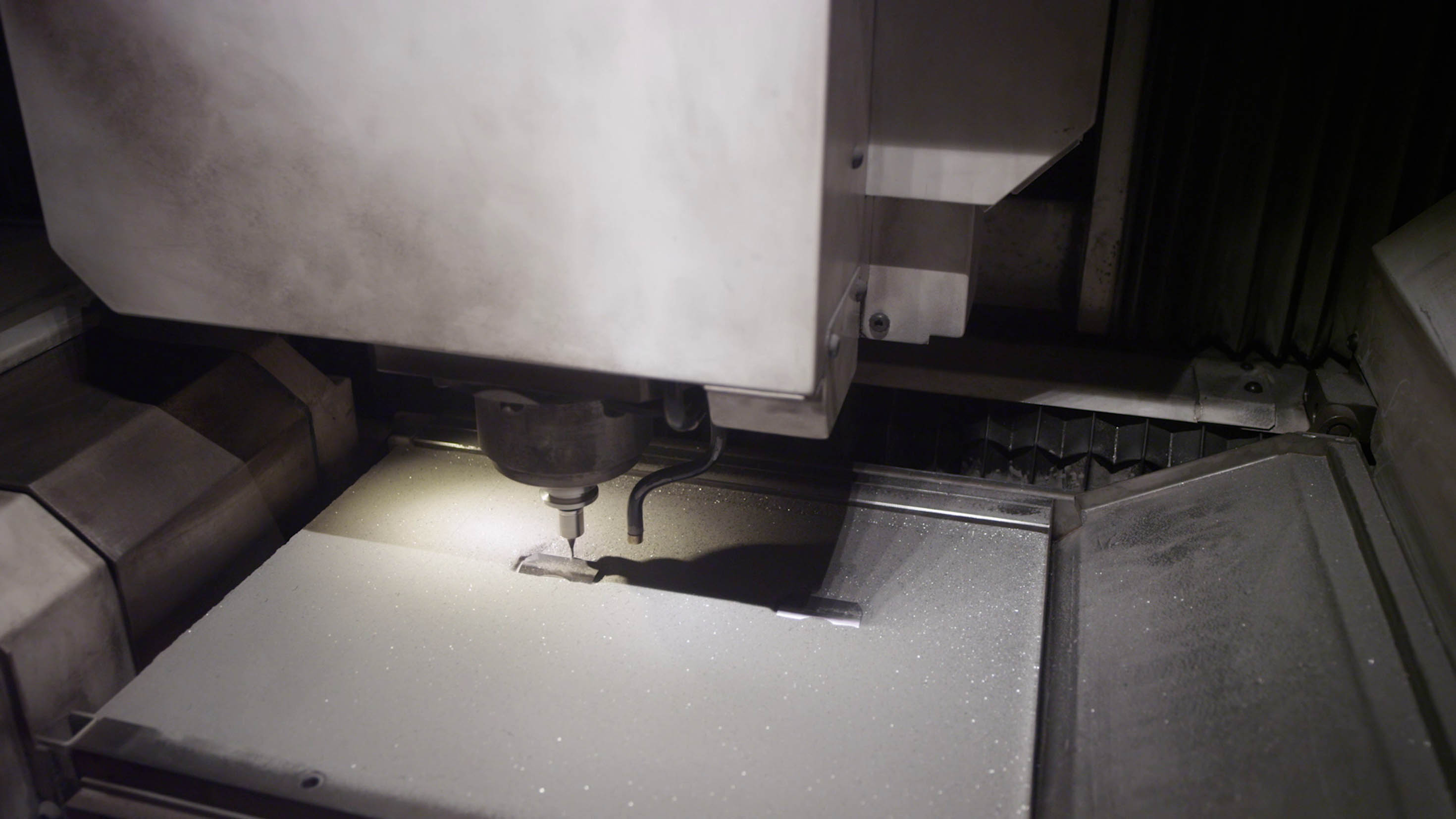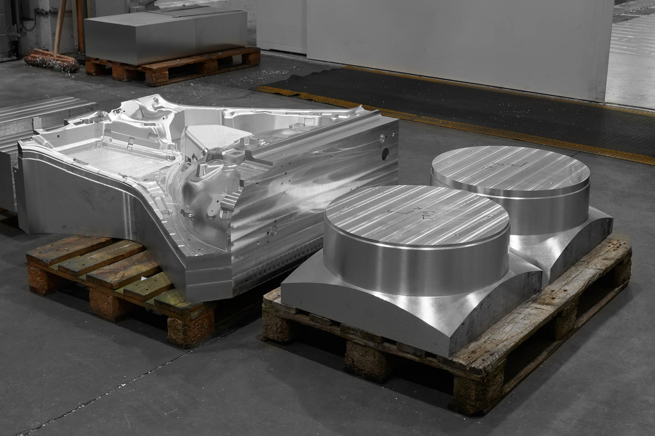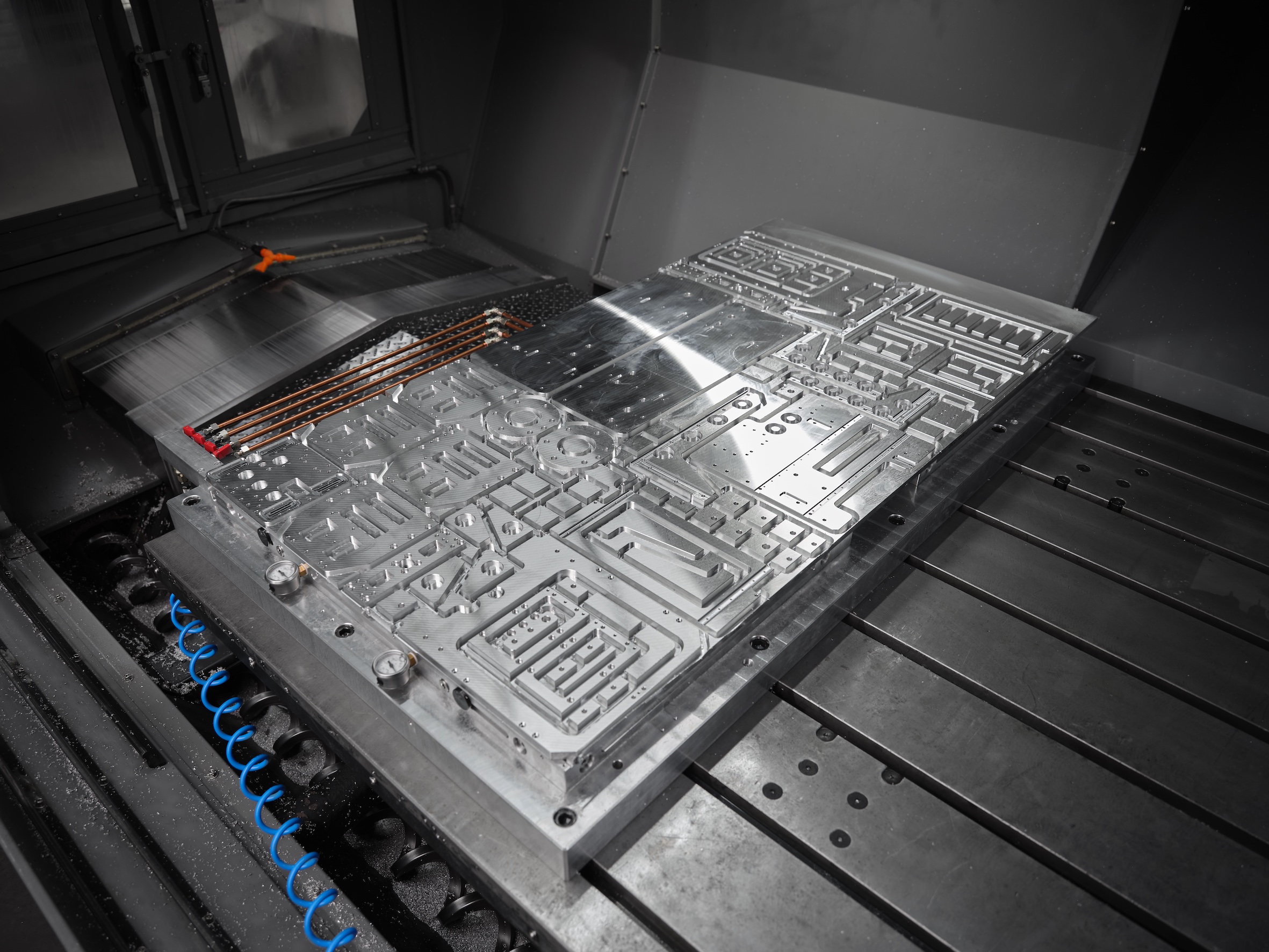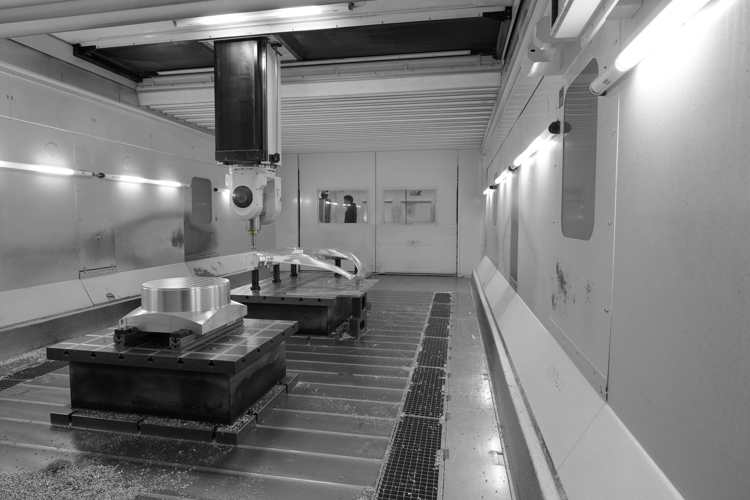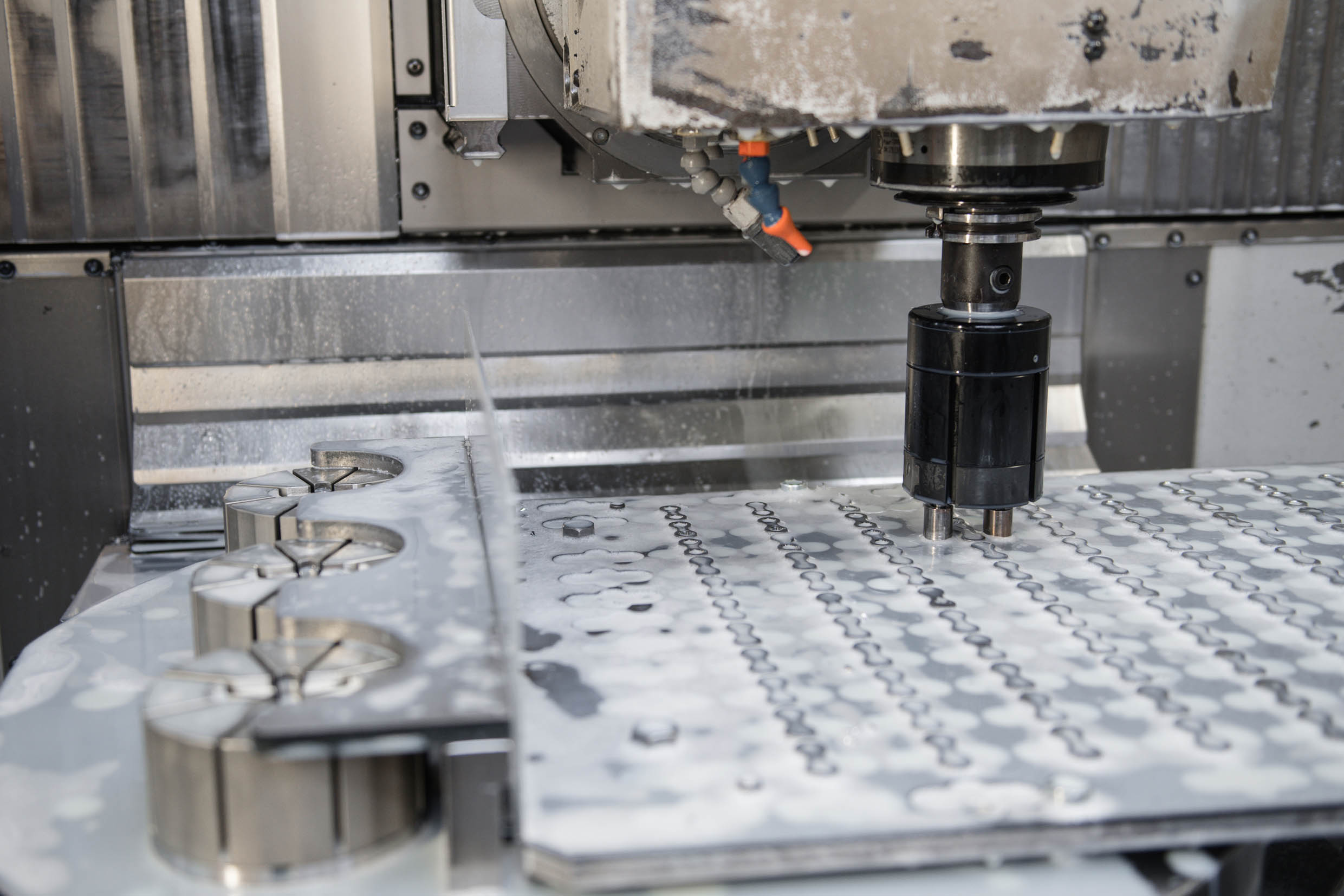 Die einzelnen Teile werden in einer Fünfseitenbearbeitung nahezu im Endmaß gefertigt. Die optimale Ausnutzung der Alumini¬umplatte berechnen die Konstrukteure mit der Maßgabe, den Abfall so gering wie möglich zu halten.