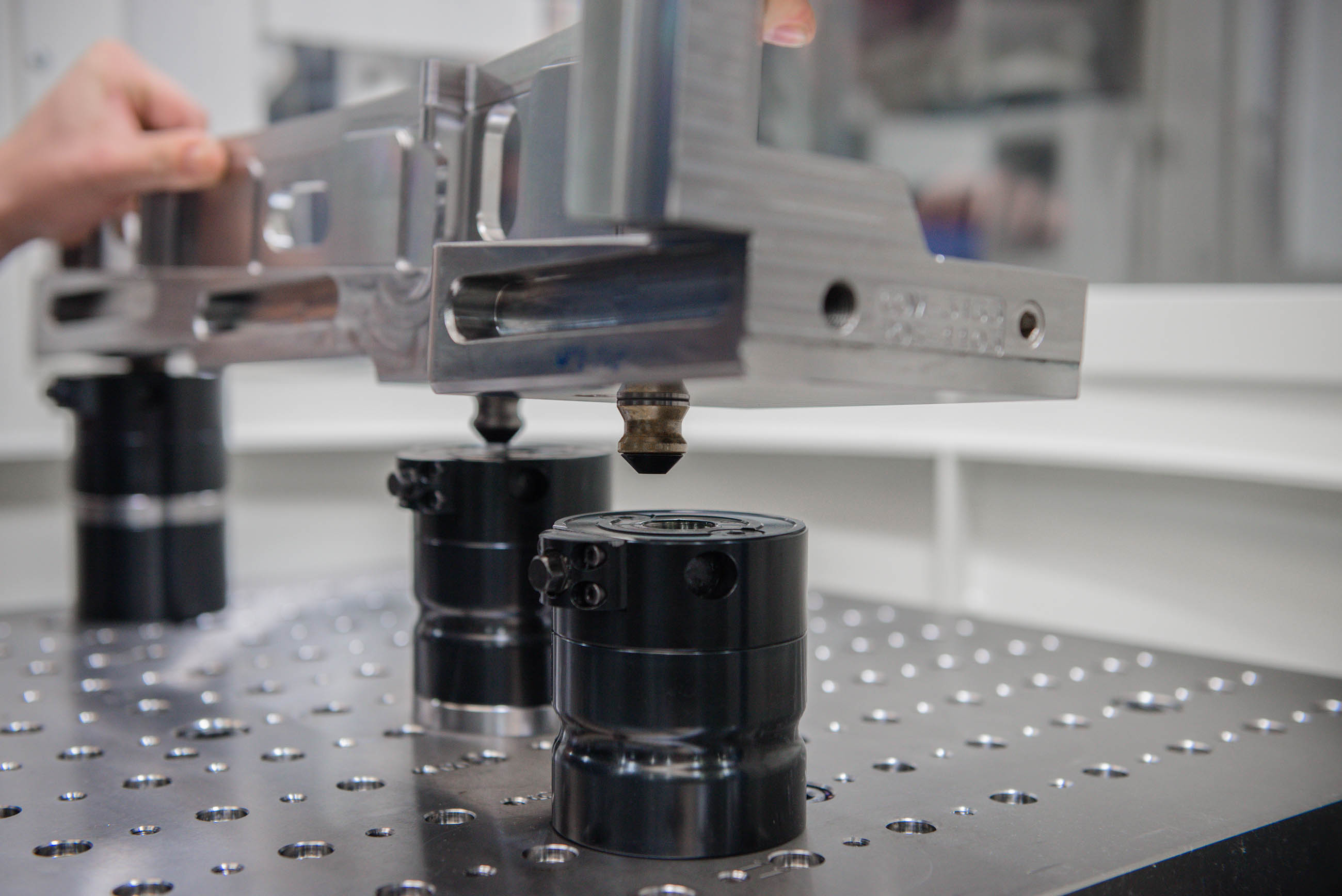 Für den Spannvorgang muss der Prüfling lediglich auf das für ein verwechslungssicheres Spannen farblich und mit Kodierungen gekennzeichnete Muster aus AMF-Einbauspannmodulen abgesetzt werden.
