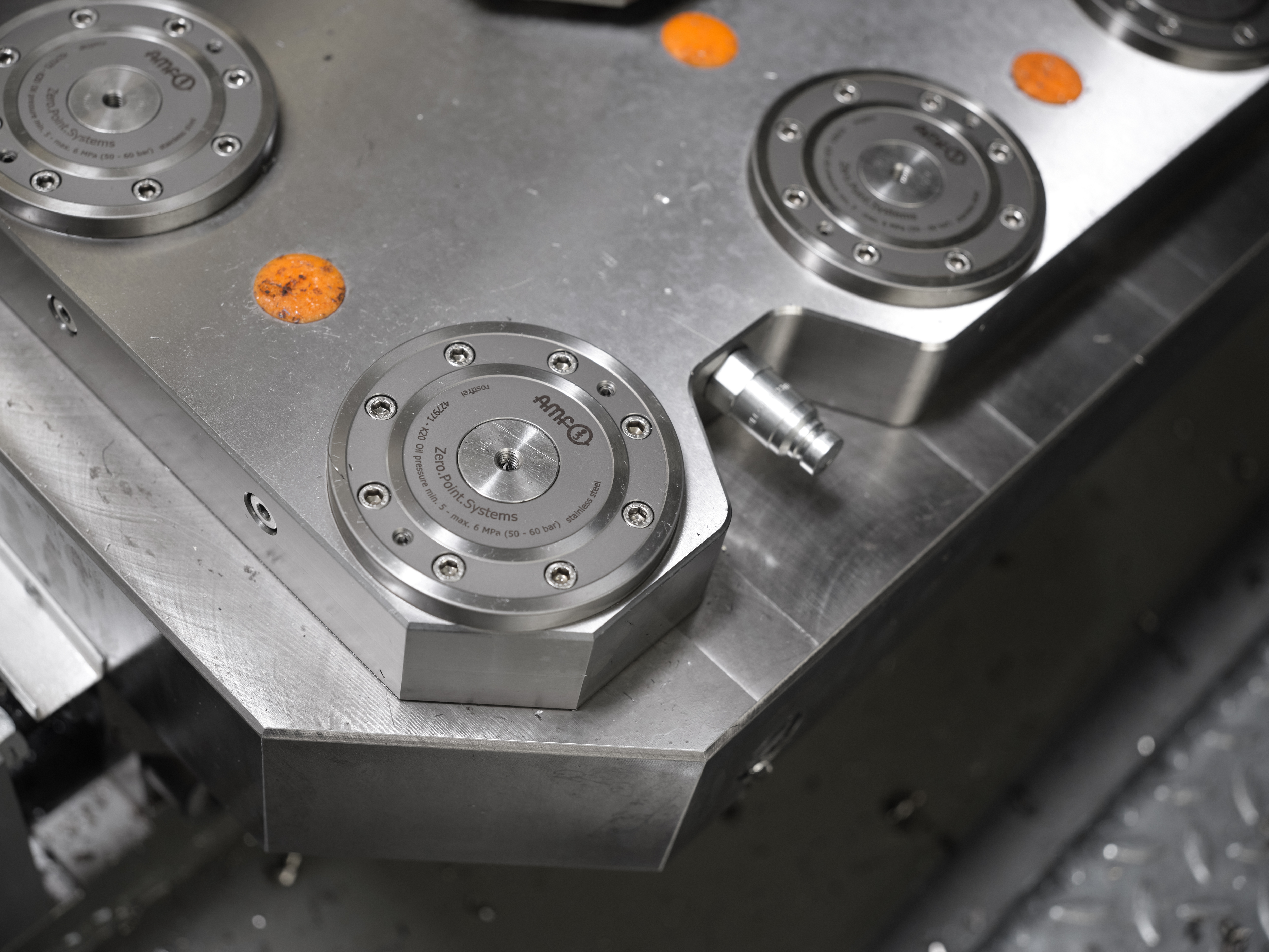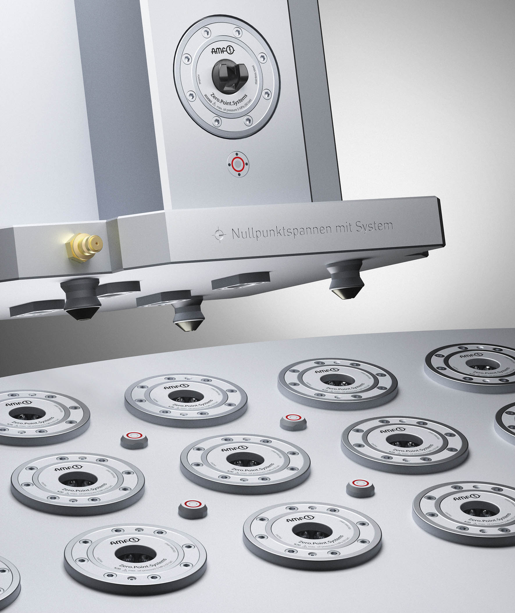 Erhöht die Maschinenlaufzeiten durch konsequente Senkung der Rüstzeiten um bis zu 90 %: AMF-Nullpunktspannsystem Zero-Point.