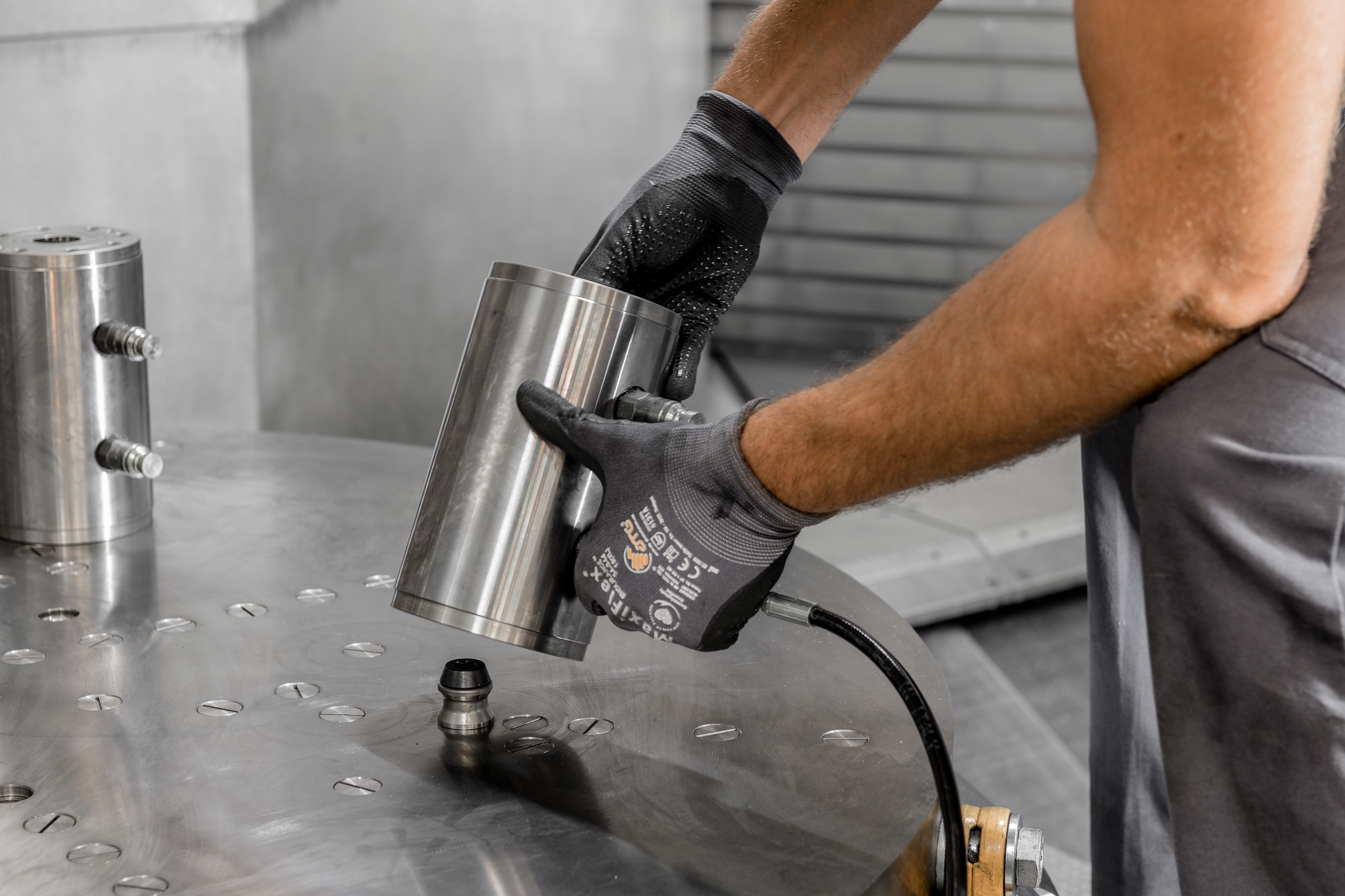 Unvergleichlich: Hydraulik von AMF kann nachsetzen, wenn sich Bauteile aufgrund von Gewicht, Schwingungen oder aus anderen Gründen lockern sollten. Das gibt zusätzlich Prozesssicherheit und garantiert, dass geforderte Toleranzen eingehalten werden.