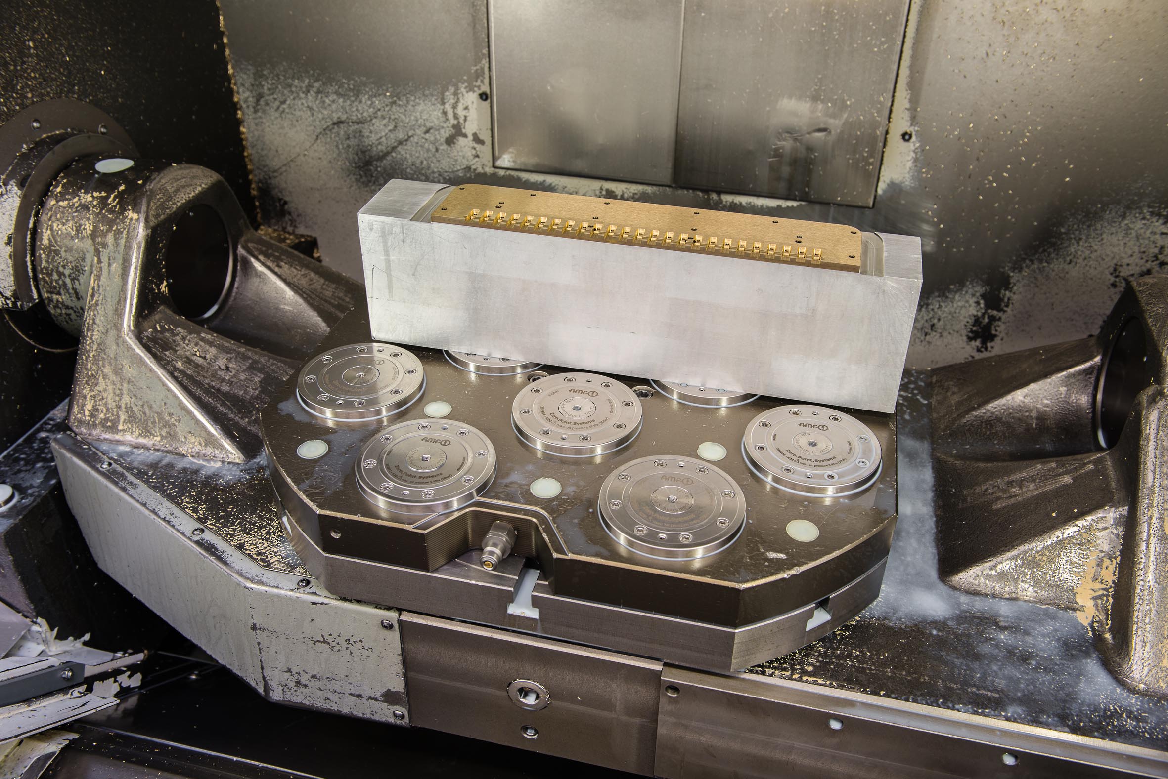 Mit AMF-Nullpunktspannmodulen ist das Werkstück bei FIBRO RT nun in drei bis vier Minuten gespannt, was früher mit Spanneisen, Distanzstücken und Verschraubung 30 bis 90 Minuten dauerte.