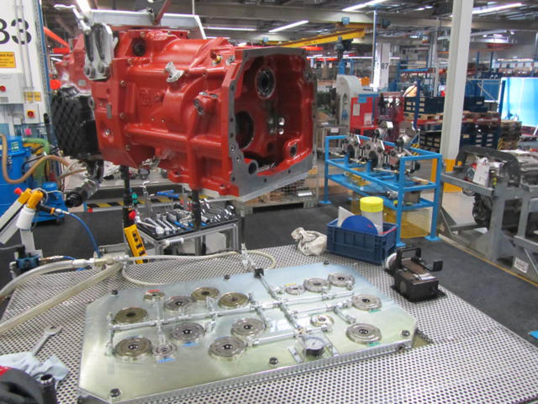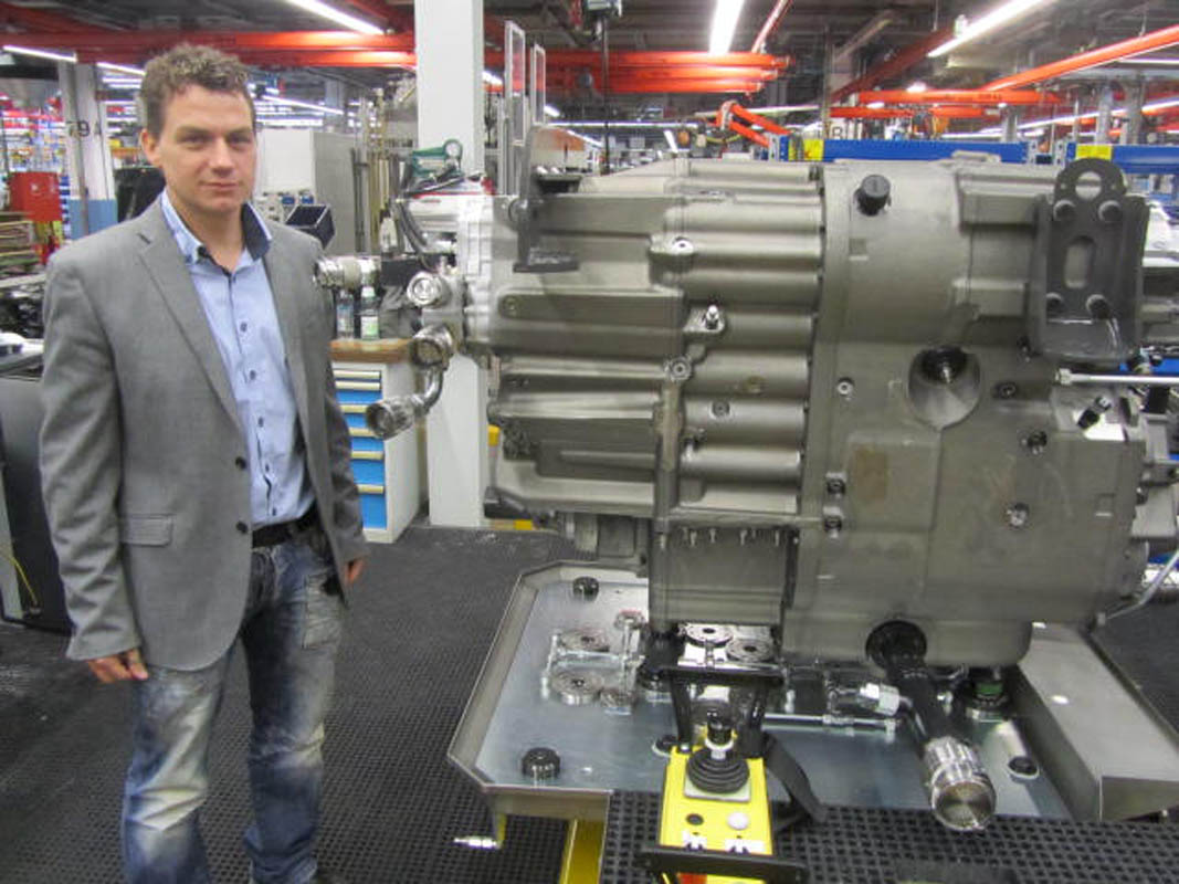 Mit AMF-Nullpunktspanntechnik wird auch das große, 1,9 Tonnen schwere, stufenlose Hightech-Getriebe Eccom 4.5 gespannt, das für eine effiziente Umsetzung der in den Xerion Schleppern von Claas installierten 400 kW Motoren sorgt.