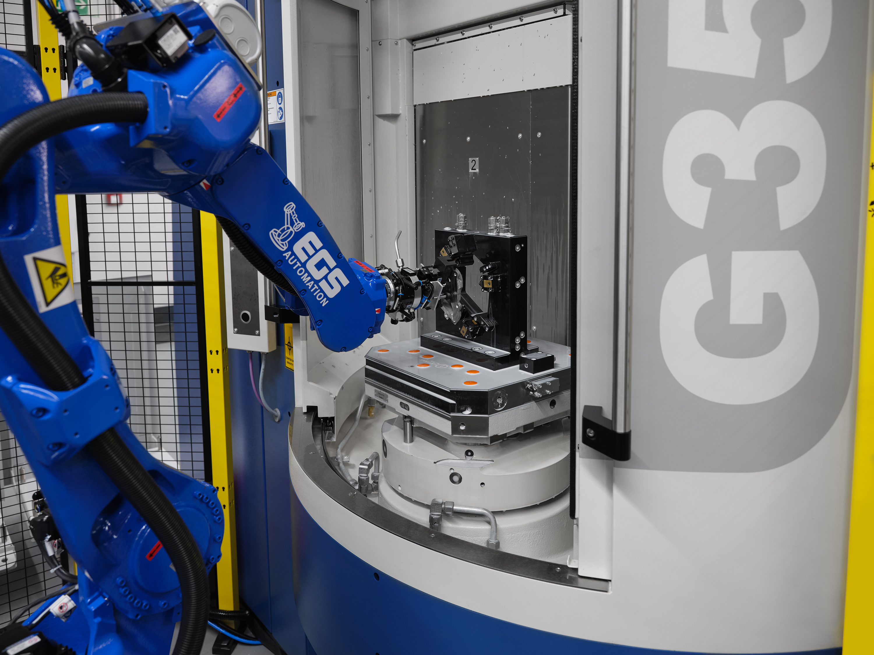 Die vorausschauend automatisierte Fertigung bei Scherzinger macht steigende Abrufzahlen locker mit. Das neue 5-Achs-Bearbeitungszentrum von Grob ist mit einer Automation von EGS und Vorrichtungen von AMF ergänzt.