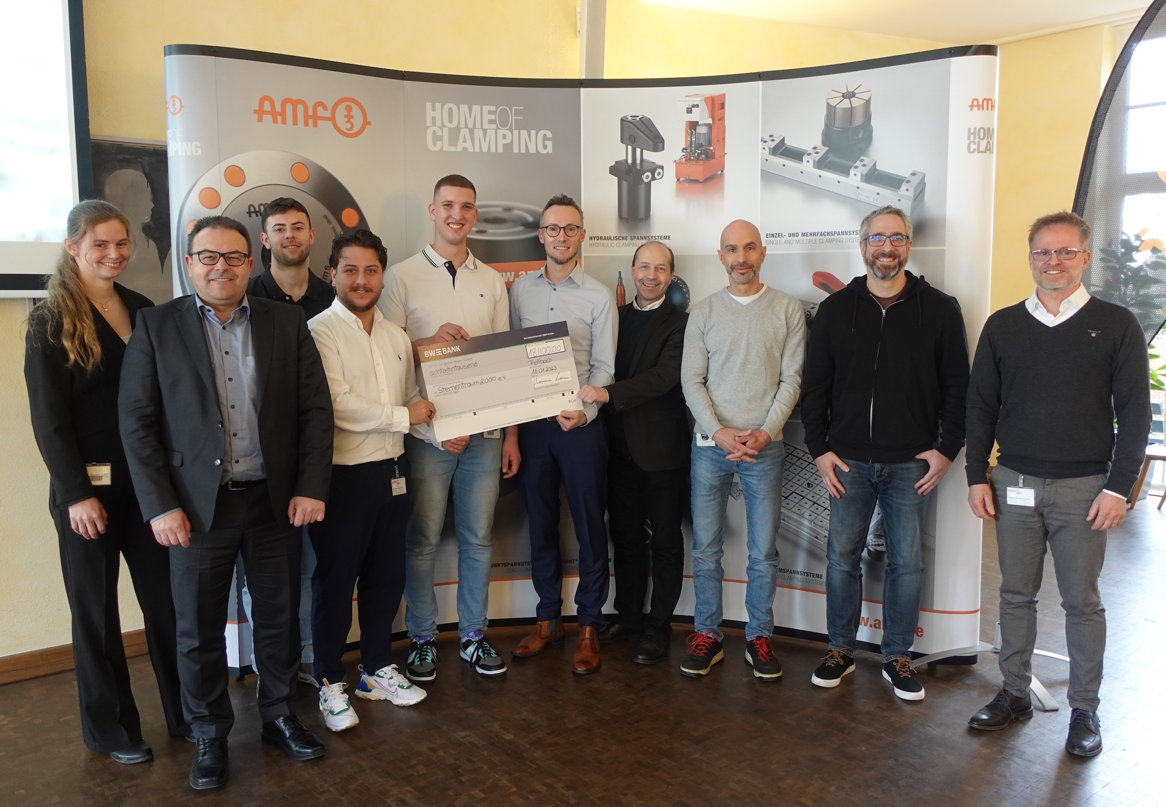 Das Ziel einer vollautomatisierten, mannlosen Fertigung ist dank guter Zusammenarbeit aller Beteiligten in Rekordzeit erreicht worden. (von links) Mario Maier, Sabrina Löffler, Tobias King (alle Scherzinger), Willi Fast (AMF), Oliver Hindinger, Fabio Manzanillo (beide Scherzinger)