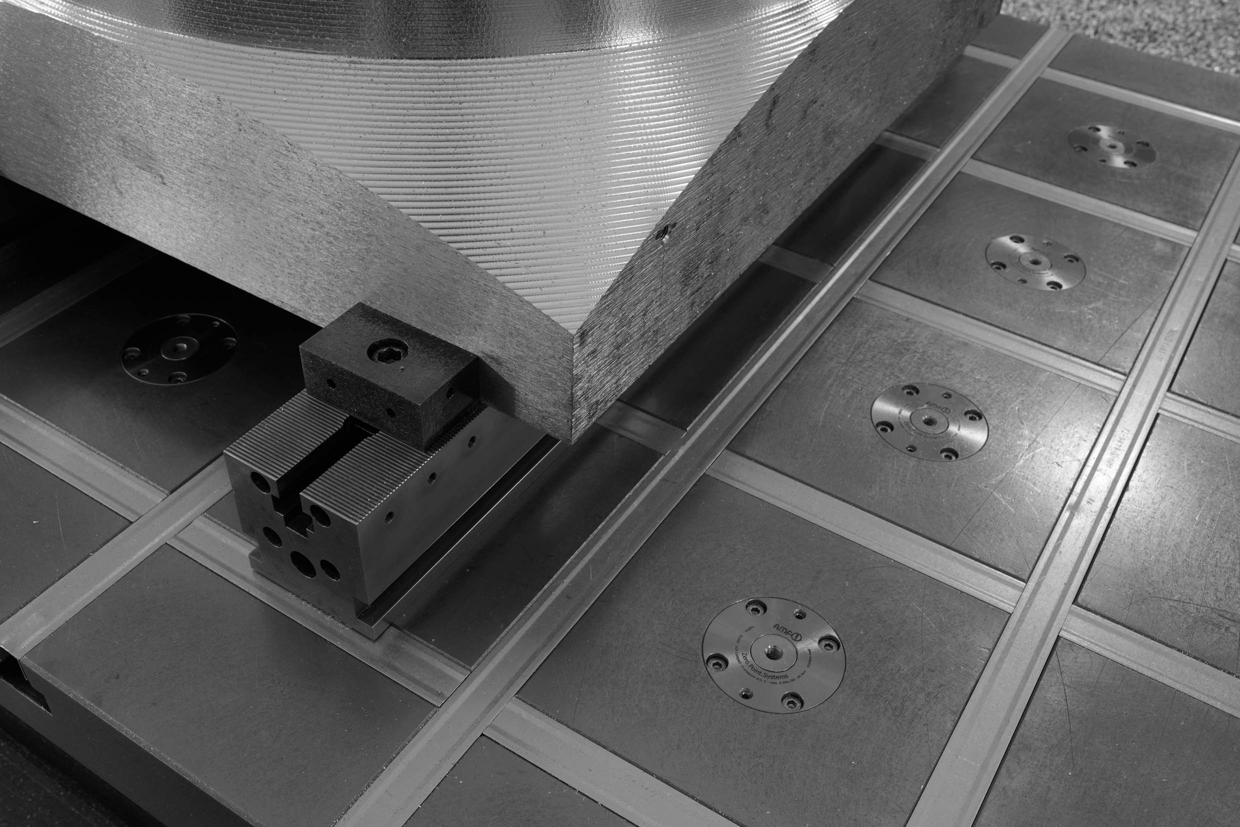 Die Grundplatte hat Spannnippel an der Unterseite für schnelles Rüsten mit dem AMF-Nullpunktspannsystem. Neben den messbaren Verbesserungen haben die Mitarbeiter mit ihrer Kreativität und mit Ideen für weitere Verbesserungen gesorgt.