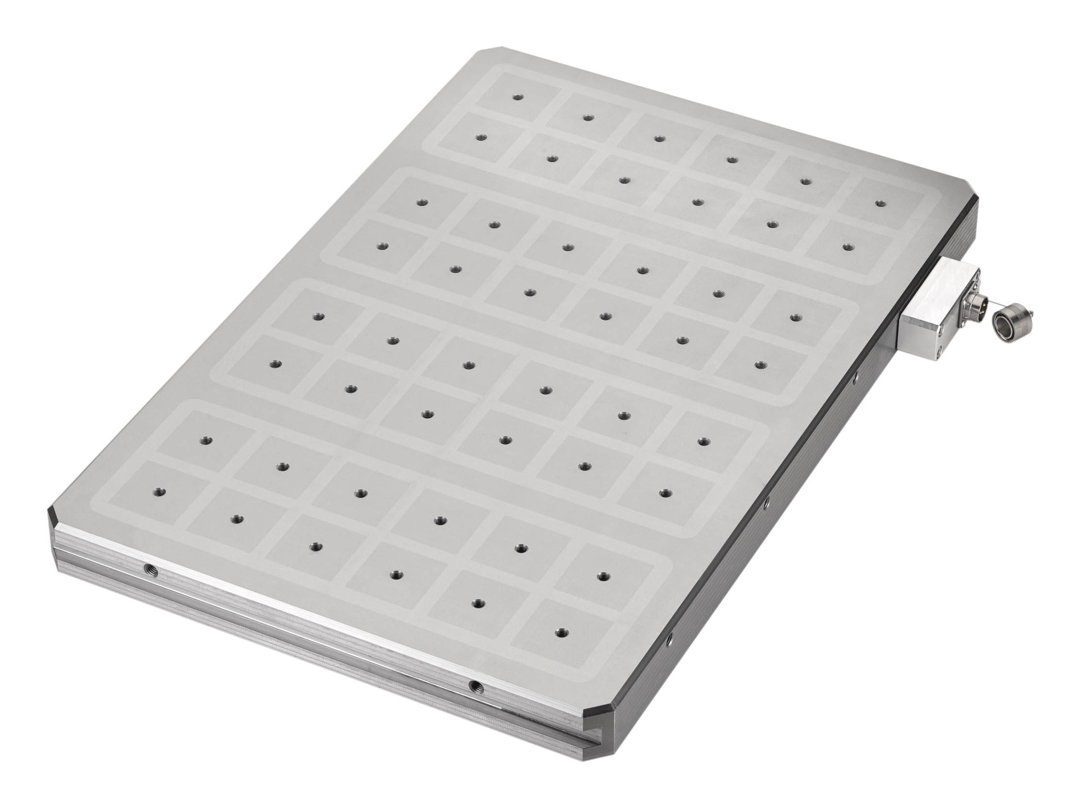 Auf der Oberseite hat die 40 mm hohe Vakuumspannplatte Nuten und 16 Ansaugstellen. Bohrungen für Anschlagstifte oder seitliche, höhenverstellbare Exzenteranschläge positionieren Werkstücke einfach.