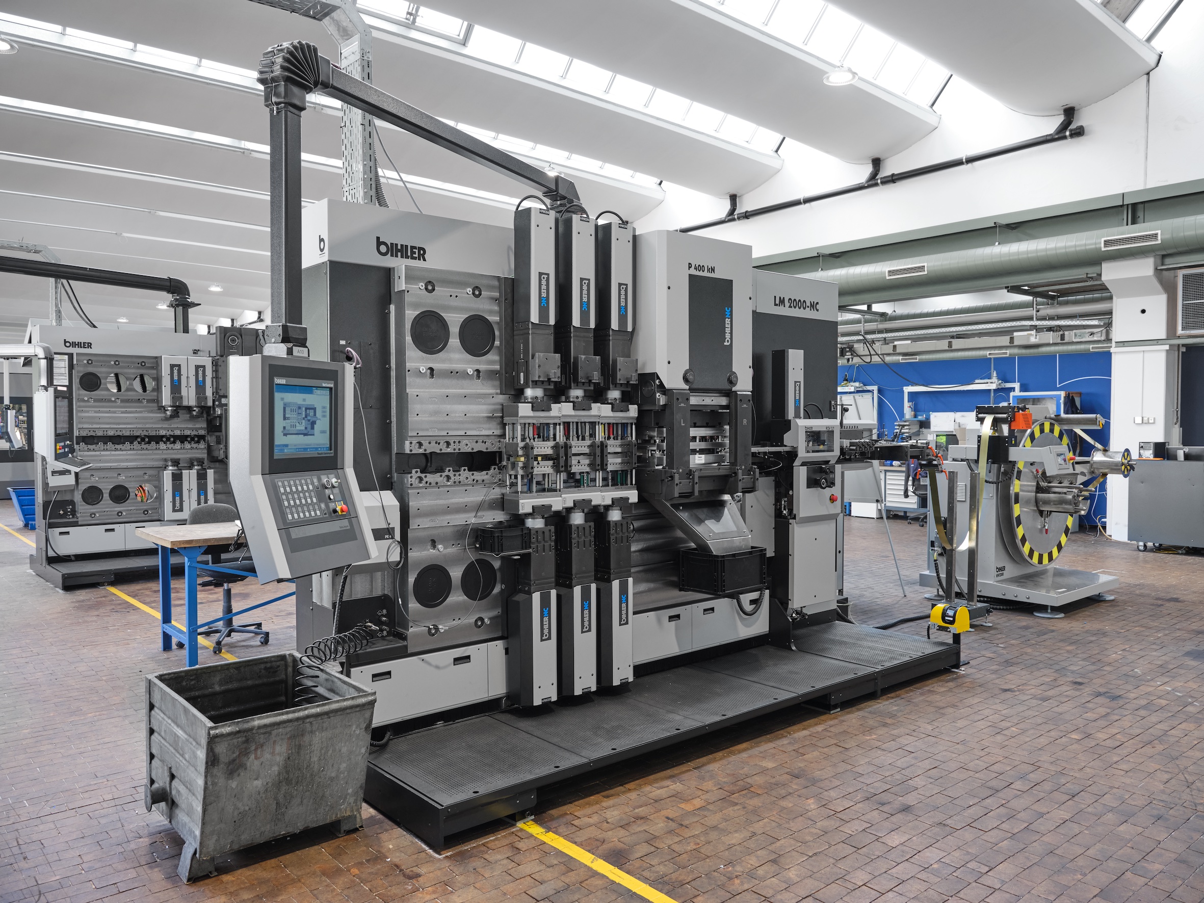 Auf Linearmaschinen von Bihler wird gestanzt, gebogen und umgeformt so schnell das Auge sehen kann.