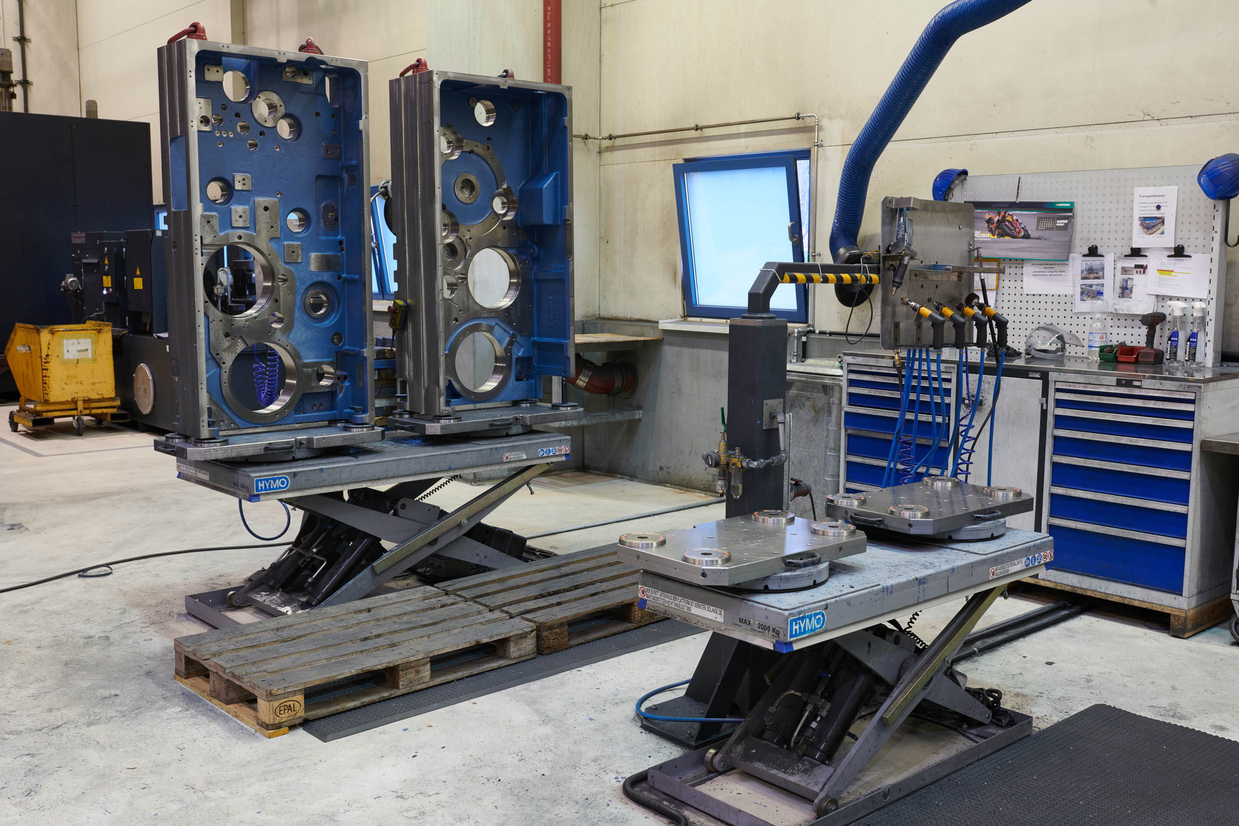 Die Rüstplätze sind nach aktuellen ökologischen und ergonomischen Gesichtspunkten mit einem Scherenhubtisch höhenverstellbar gestaltet.