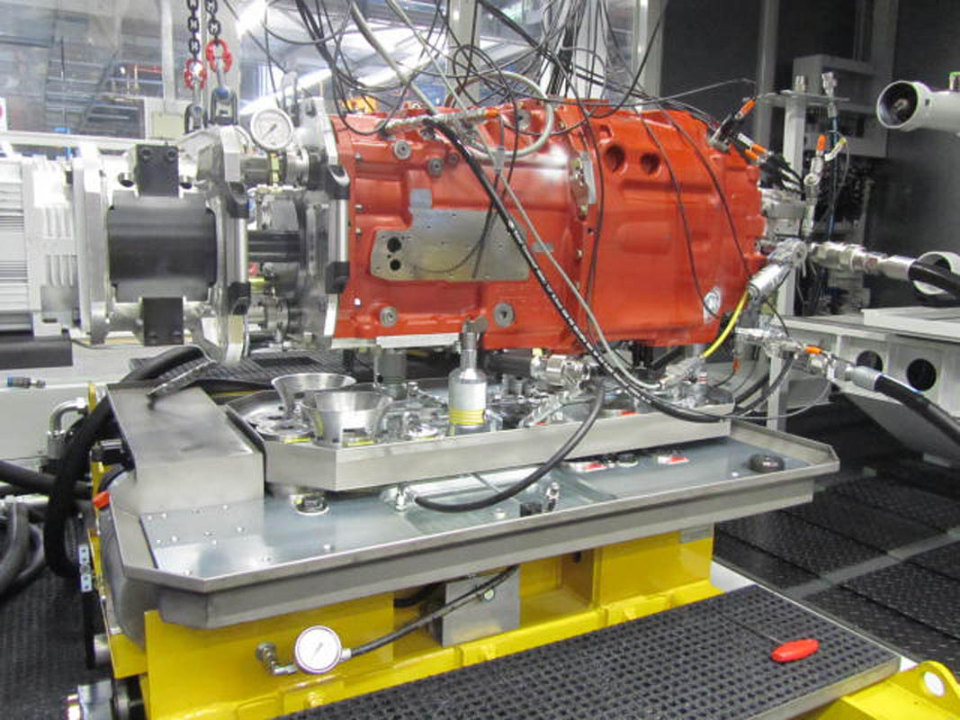 Der neue Universal-Getriebeprüfstand mit den drei Rüstplätzen und zwei Prüfwagen erhöht zusammen mit der AMF-Nullpunkt-Spanntechnik die Flexibilität bei der Prüfung unterschiedlicher Getriebearten.