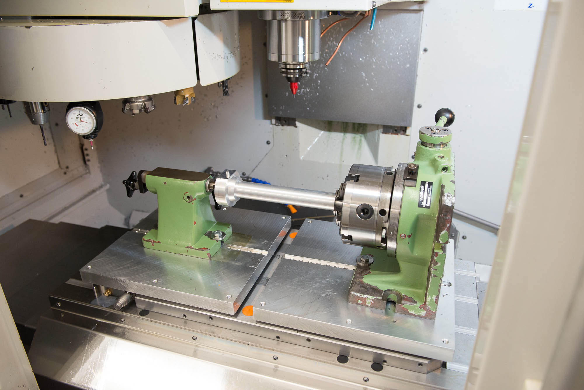 Mit bis zu 400 U/min dreht der komplette Aufbau für die Drehbearbeitung.