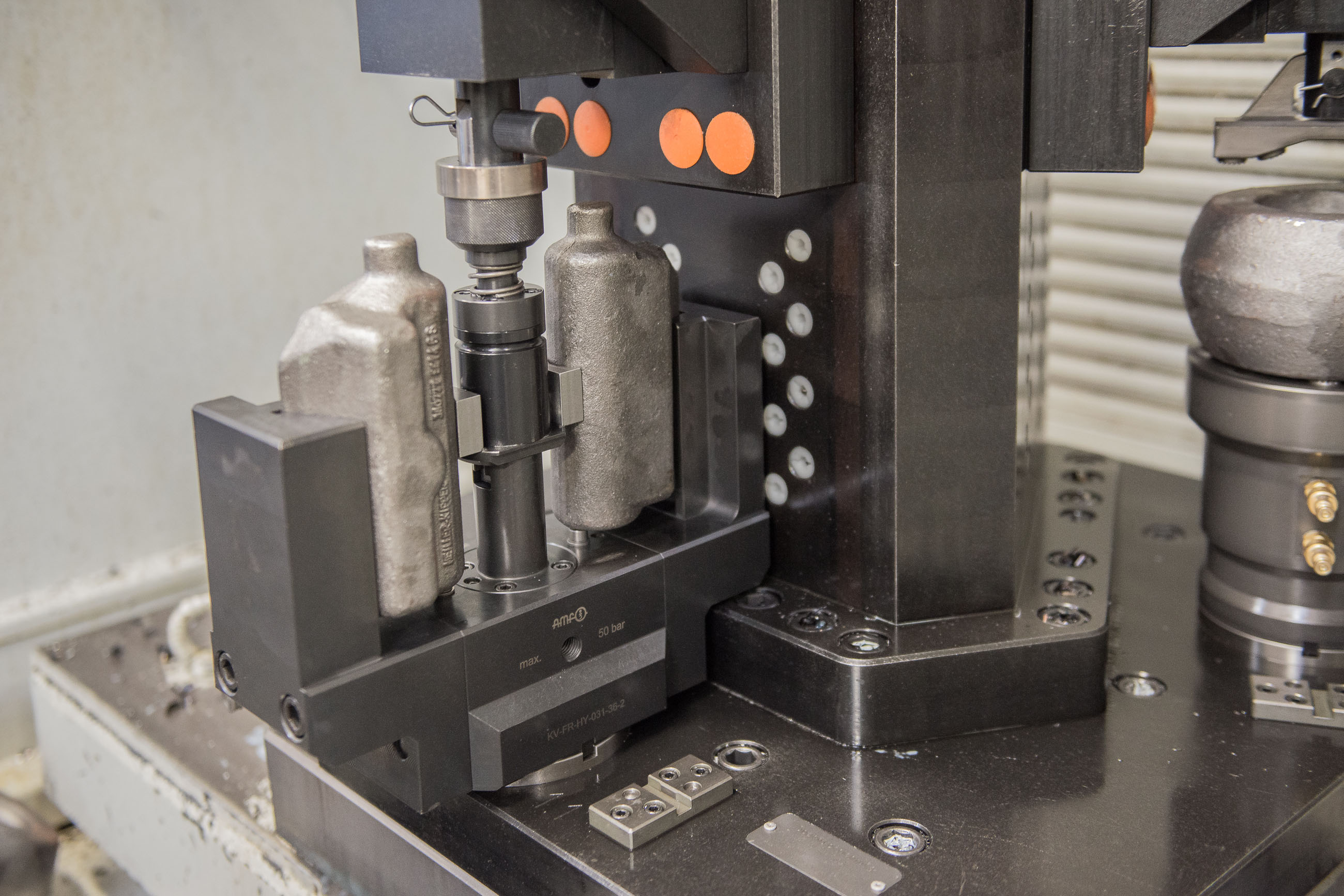 AMF beherrscht die Königsdisziplin der Spanntechnik und entwickelt flexible Spannlösungen, auch eingebettet in Vorrichtun¬gen, die sich für verschiedene Bauteile-Varianten und kleine Stückzahlen einsetzen lassen.