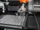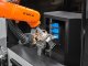 Die kleine Fläche realisiert der Hersteller, indem er den KUKA 6-Achs- Roboter mit einer Traglast von 10 kg nicht seitlich anbringt, sondern oben aufsetzt. Am Ende des 6-Achs-Roboters sitzt ein Doppelgreifer mit integrierter Reinigungsdüse. Der kann durch unterschiedliche Greifergeometrien in einem Zyklus ein fertig bearbeitetes Teil entnehmen und ein neues Rohteil einwechseln. Eine optionale Wende- und Positioniereinheit ermöglicht die präzise Bearbeitung von Teilen an allen Seiten.