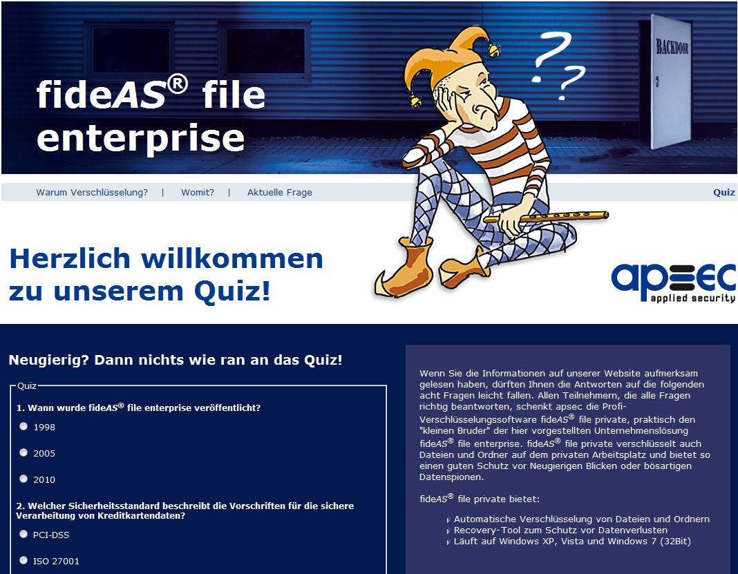 Beim Quiz von apsec gibt es eine Einzelplatz-Software zu gewinnnen