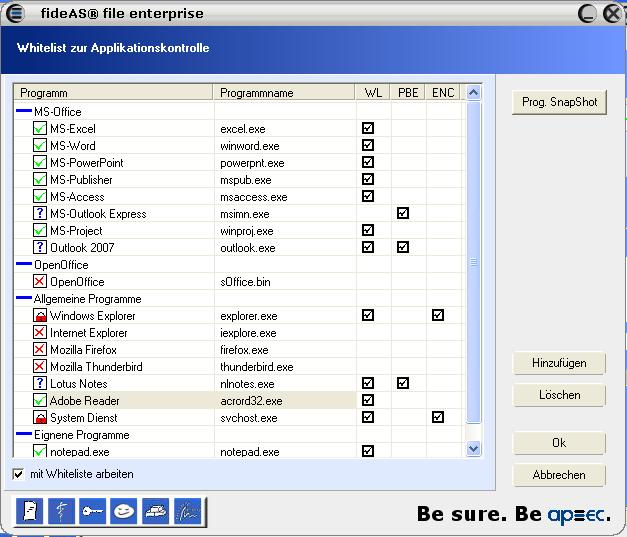 Screenshot Modul Anwendungskontrolle