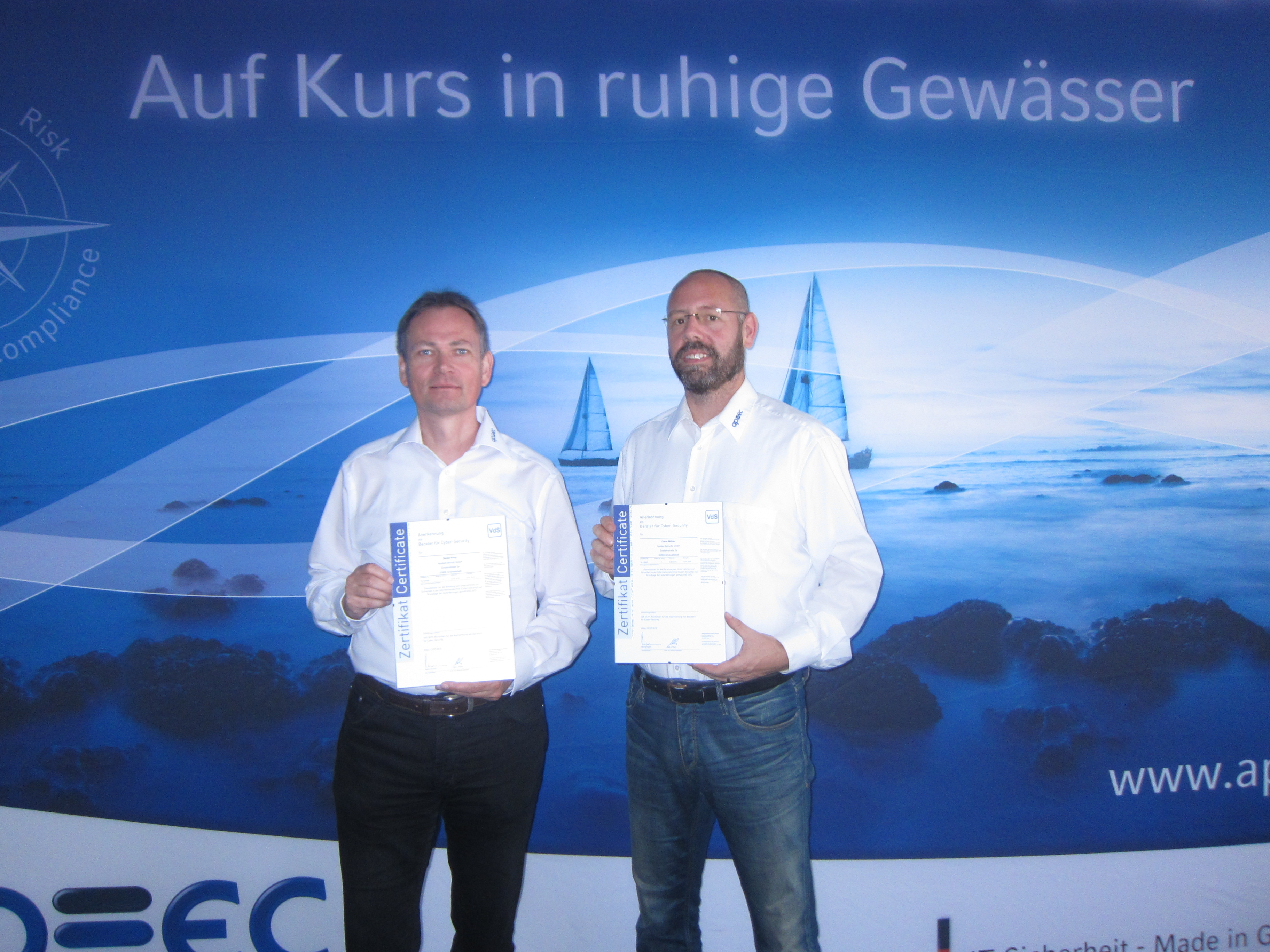 VdS-Zertifikat für Claus Möhler und Stefan Koop von apsec